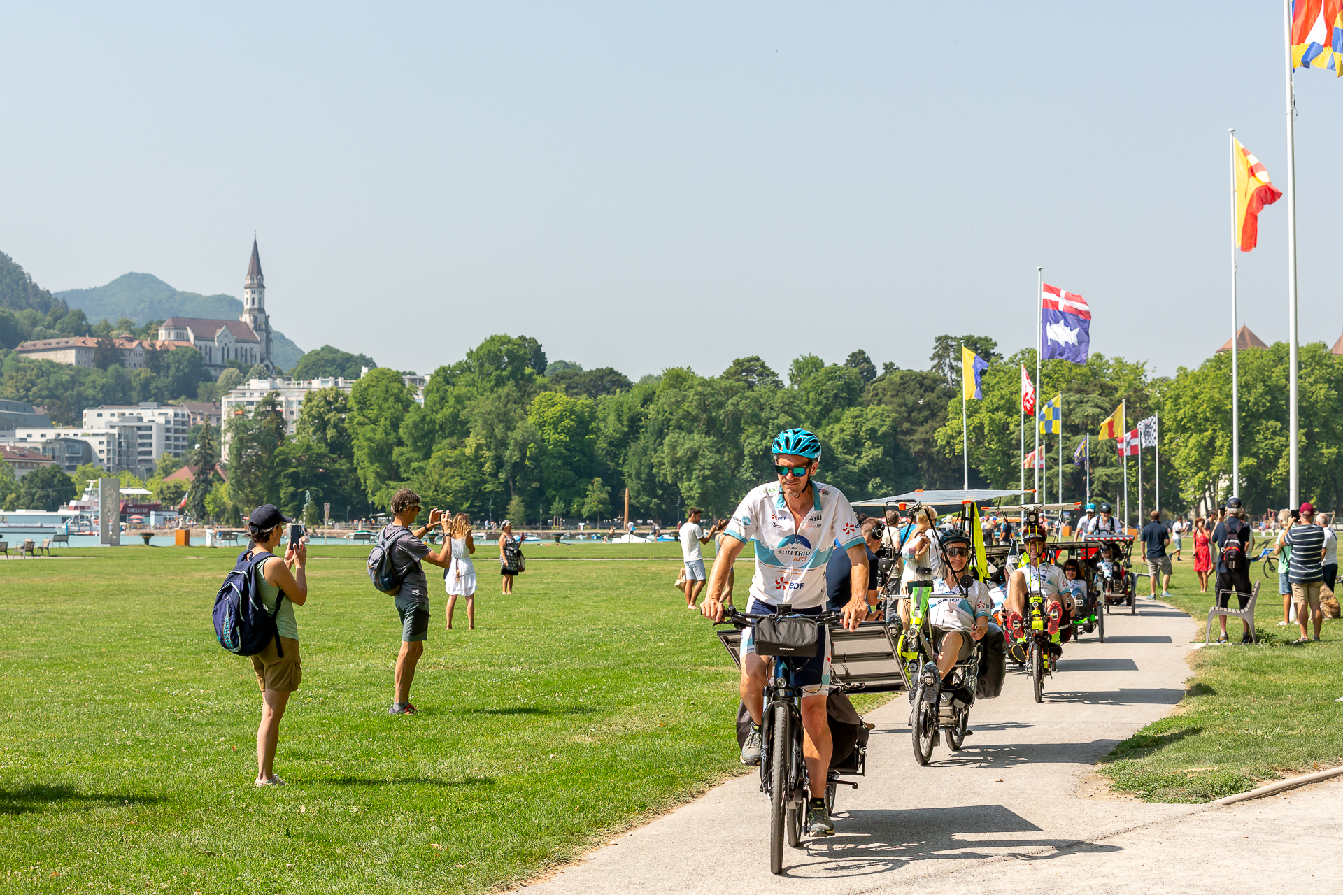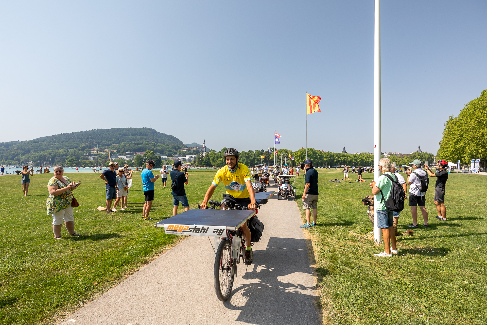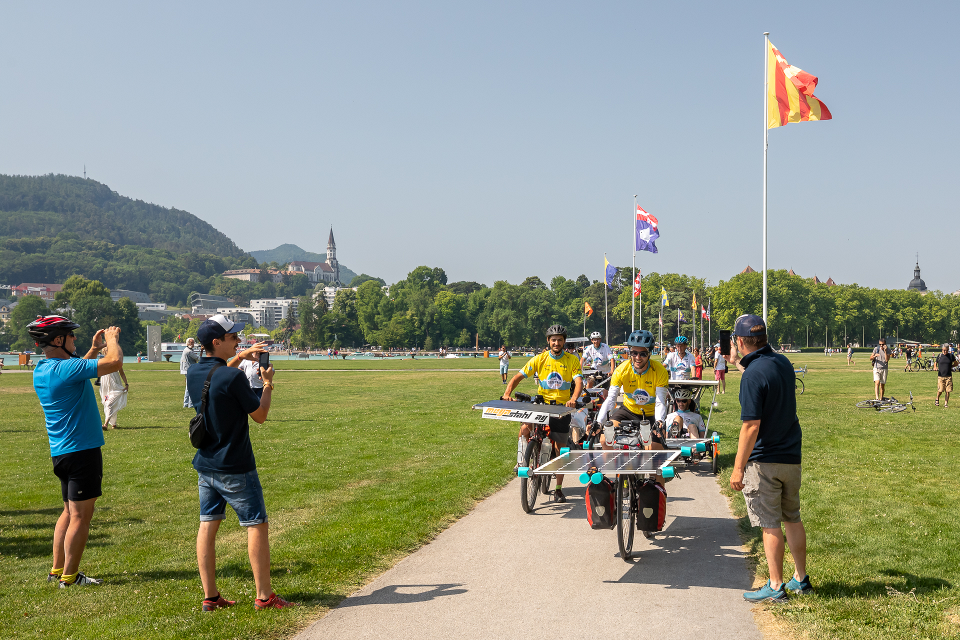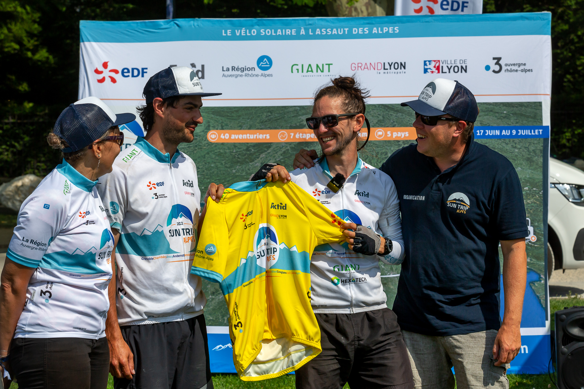 Ce départ, donné en présence de Catherine Allard, adjointe au Maire d’Annecy en charge des sports, était l’occasion de la distribution du tout premier maillot jaune de l’histoire Sun Trip. Un maillot qui récompense ceux qui vont aller chercher le plus de points au sommet des cols alpins.