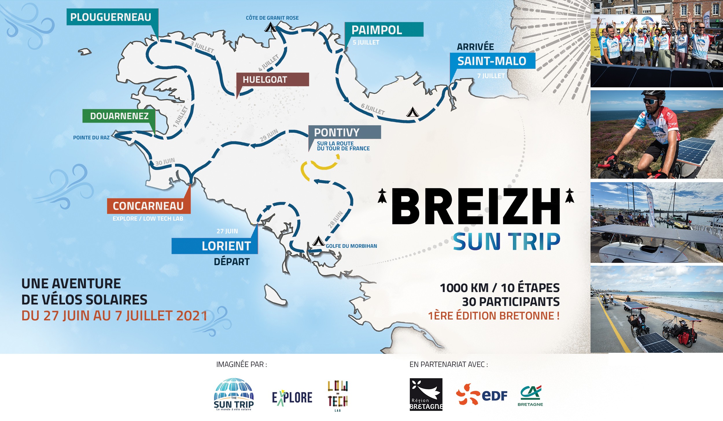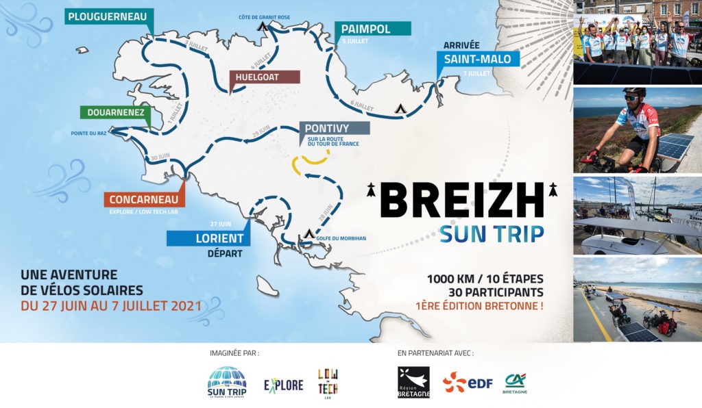 Retrouvez sur cette page les dernières actus du projet Breizh Sun Trip, organisé du 27 juin au 7 juillet, de Lorient à Saint-Malo. 1000km pour 10 étapes à la rencontre du meilleur de la région Bretagne !