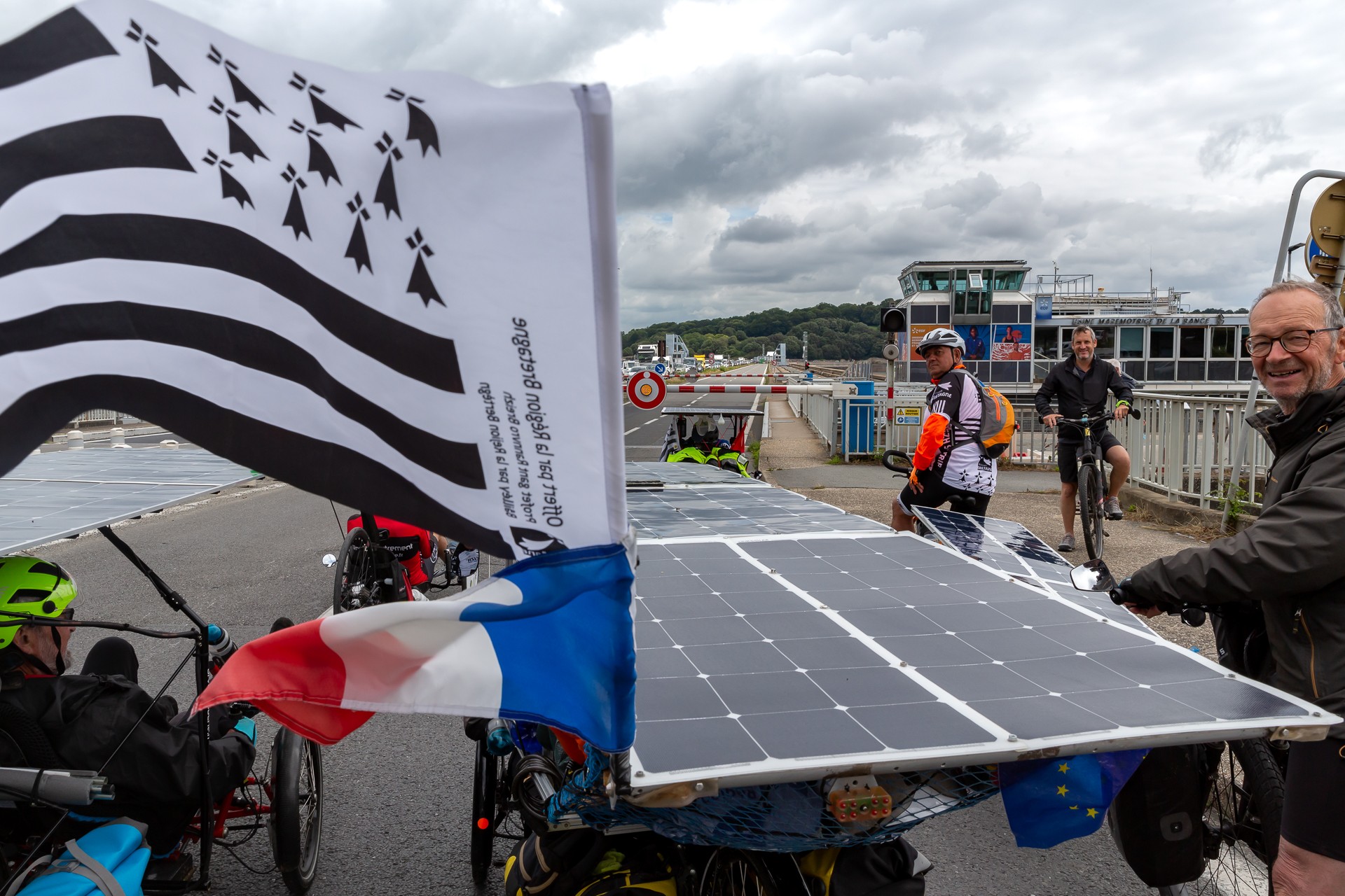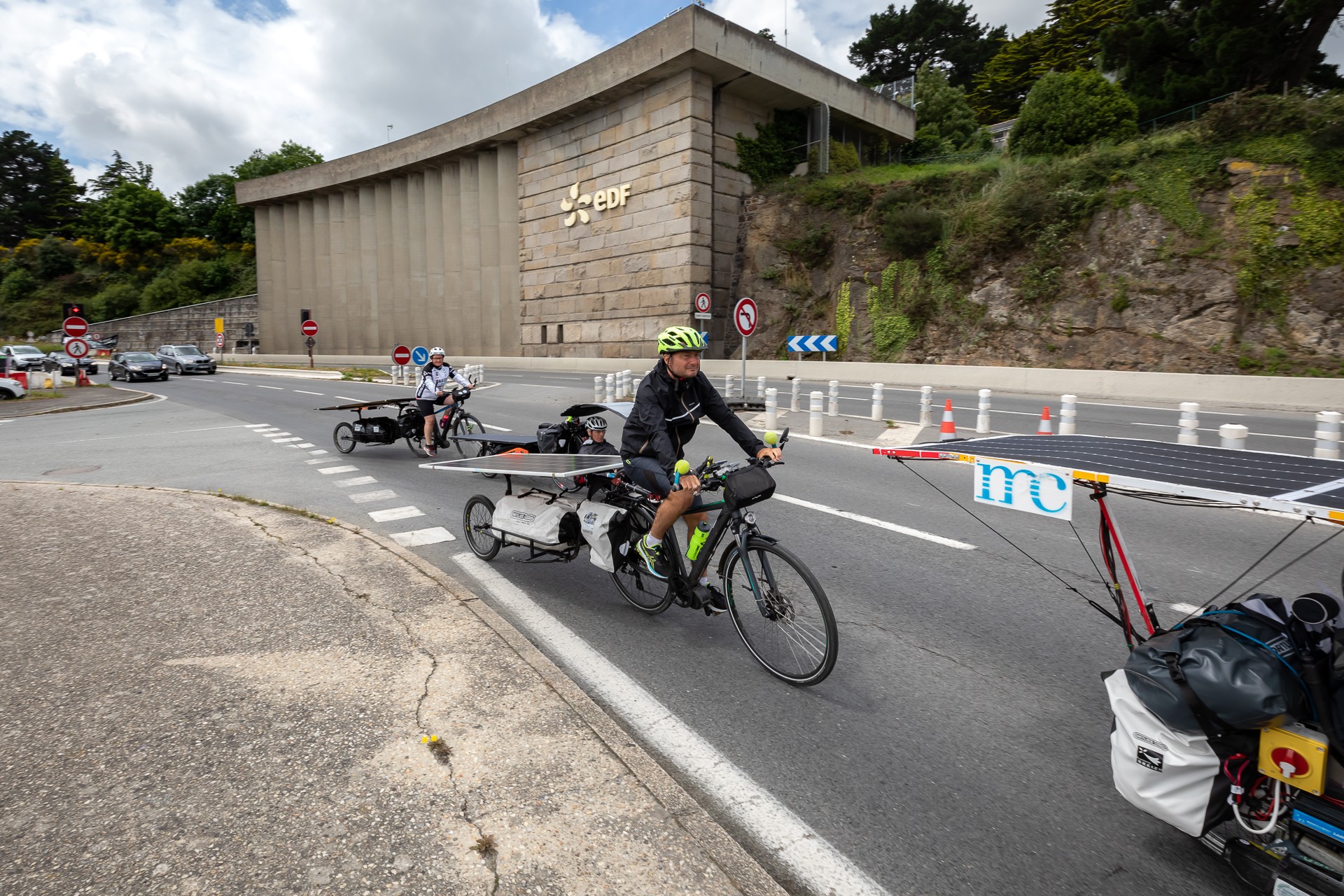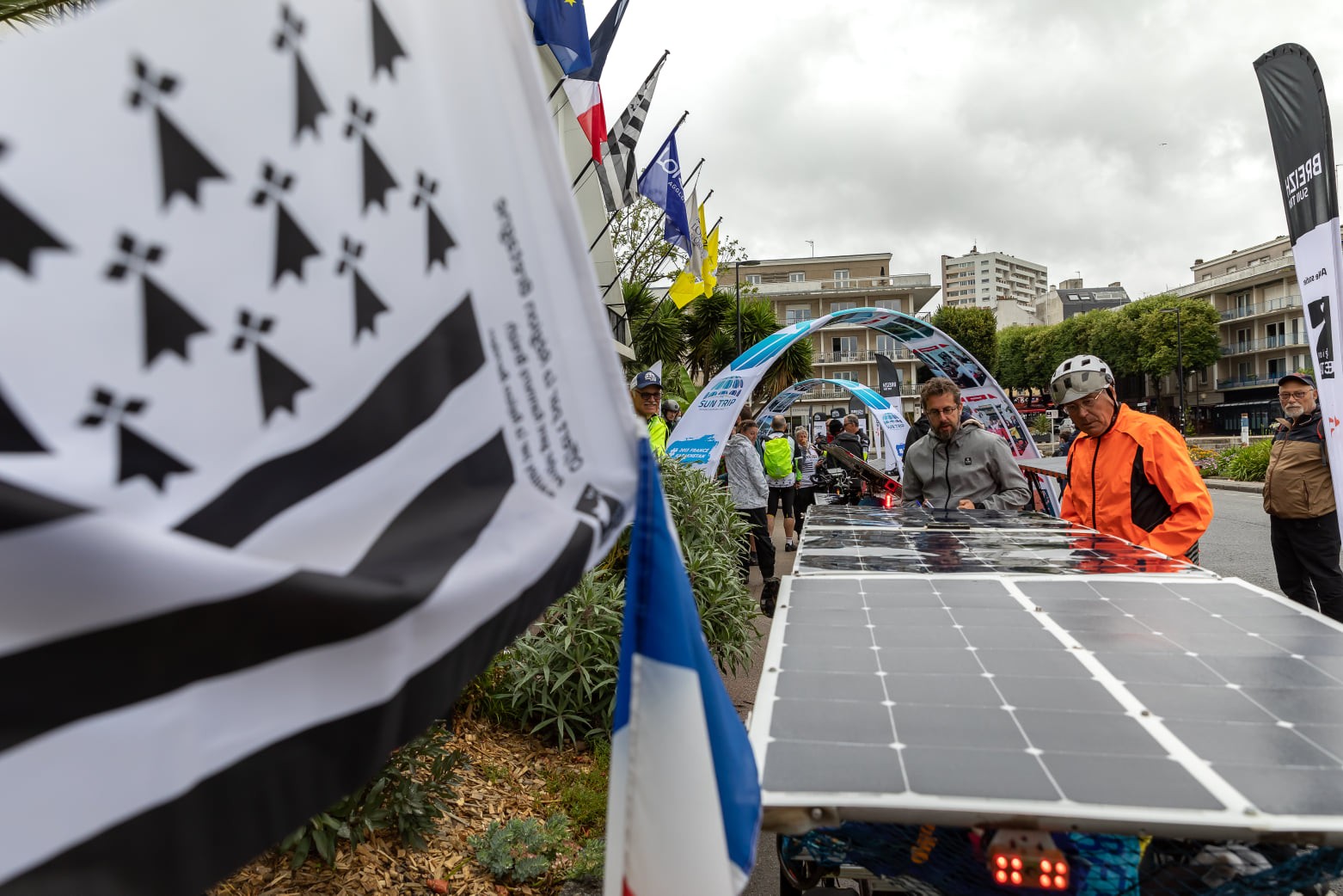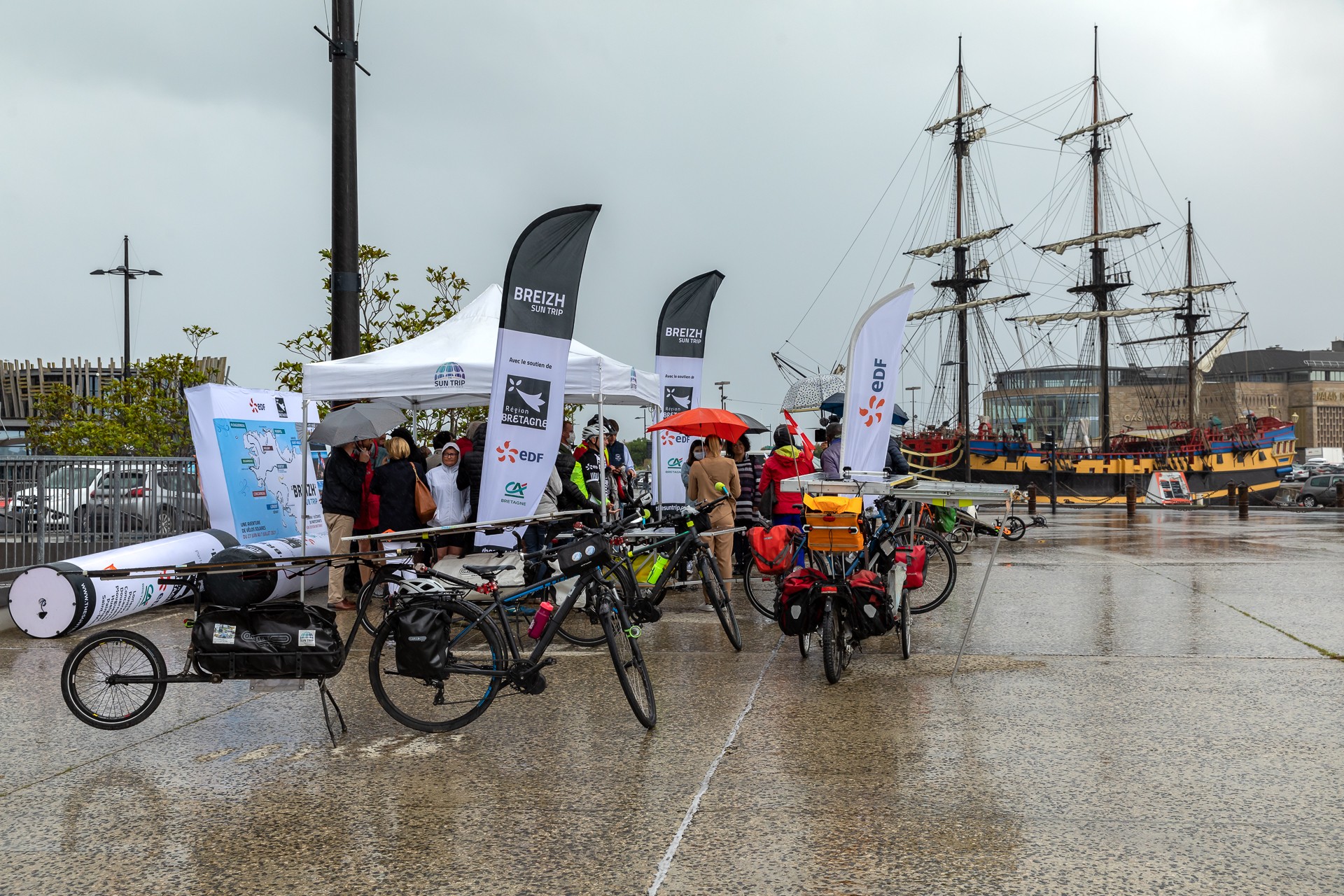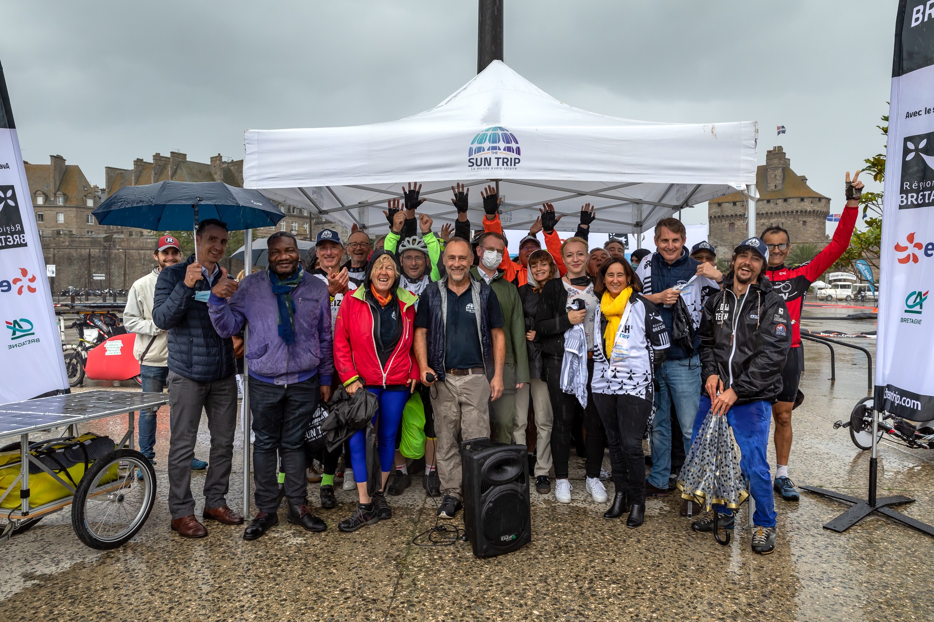Après un passage par l’usine marémotrice EDF de Rance, le Breizh Sun Trip se conclue à Saint-Malo, sous une ultime grosse averse 🙂