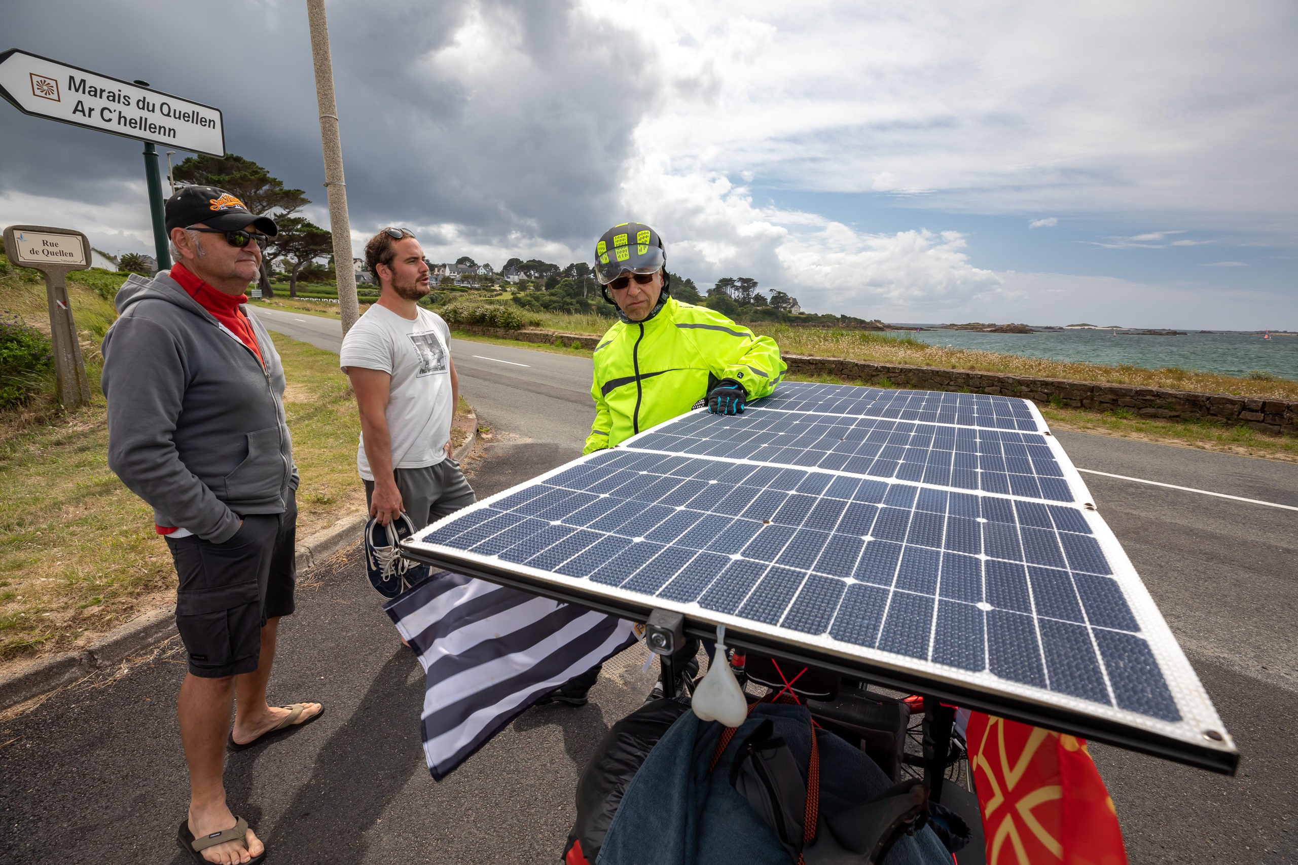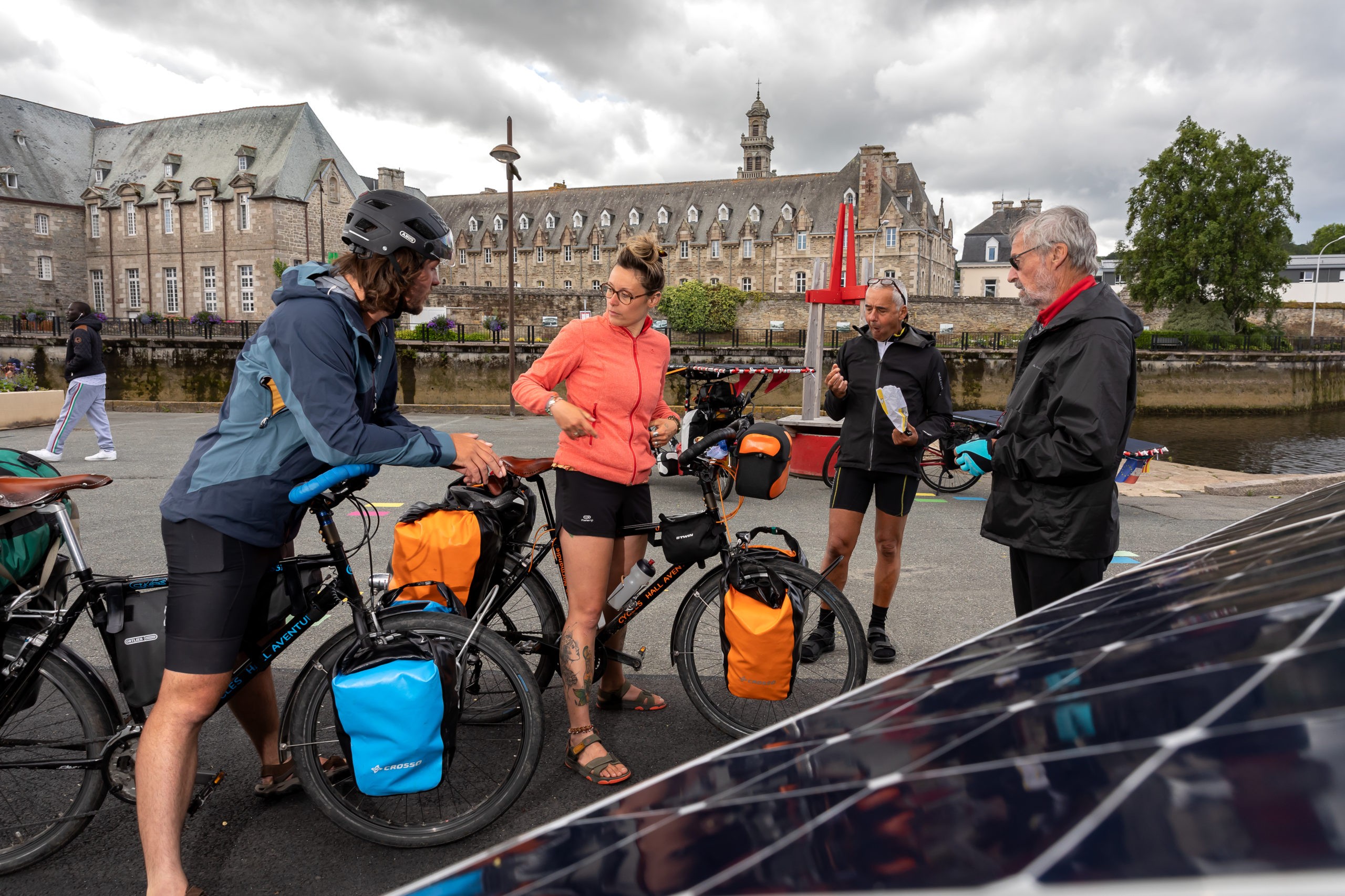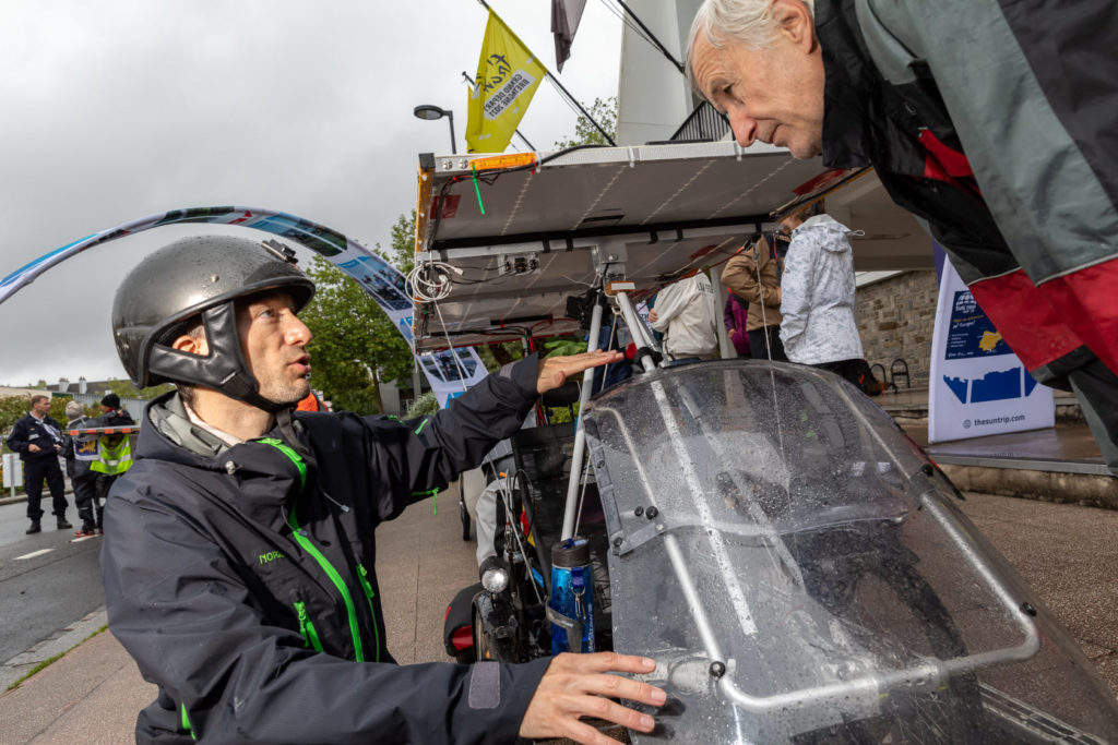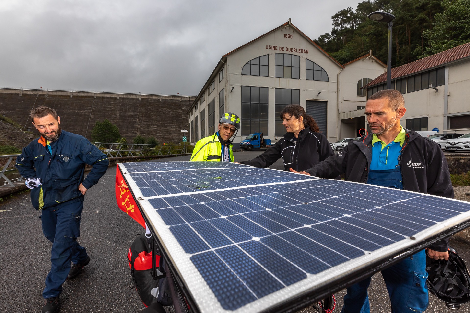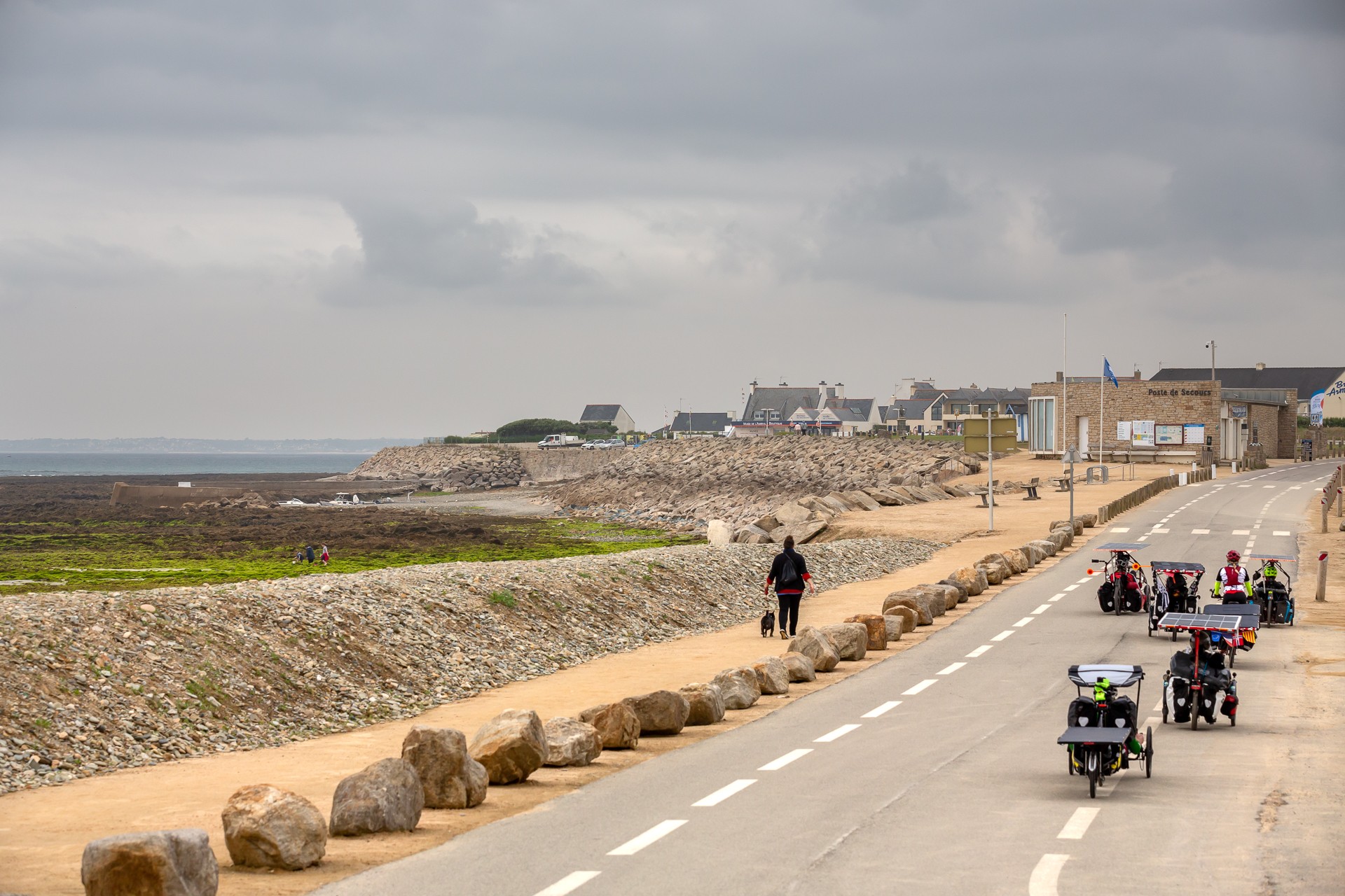 Après un passage par l’usine marémotrice EDF de Rance, le Breizh Sun Trip se conclue à Saint-Malo, sous une ultime grosse averse 🙂