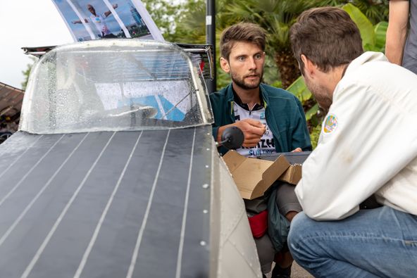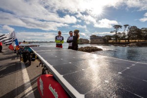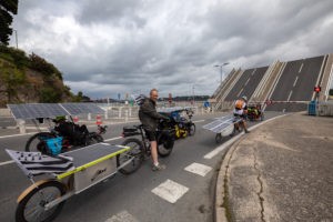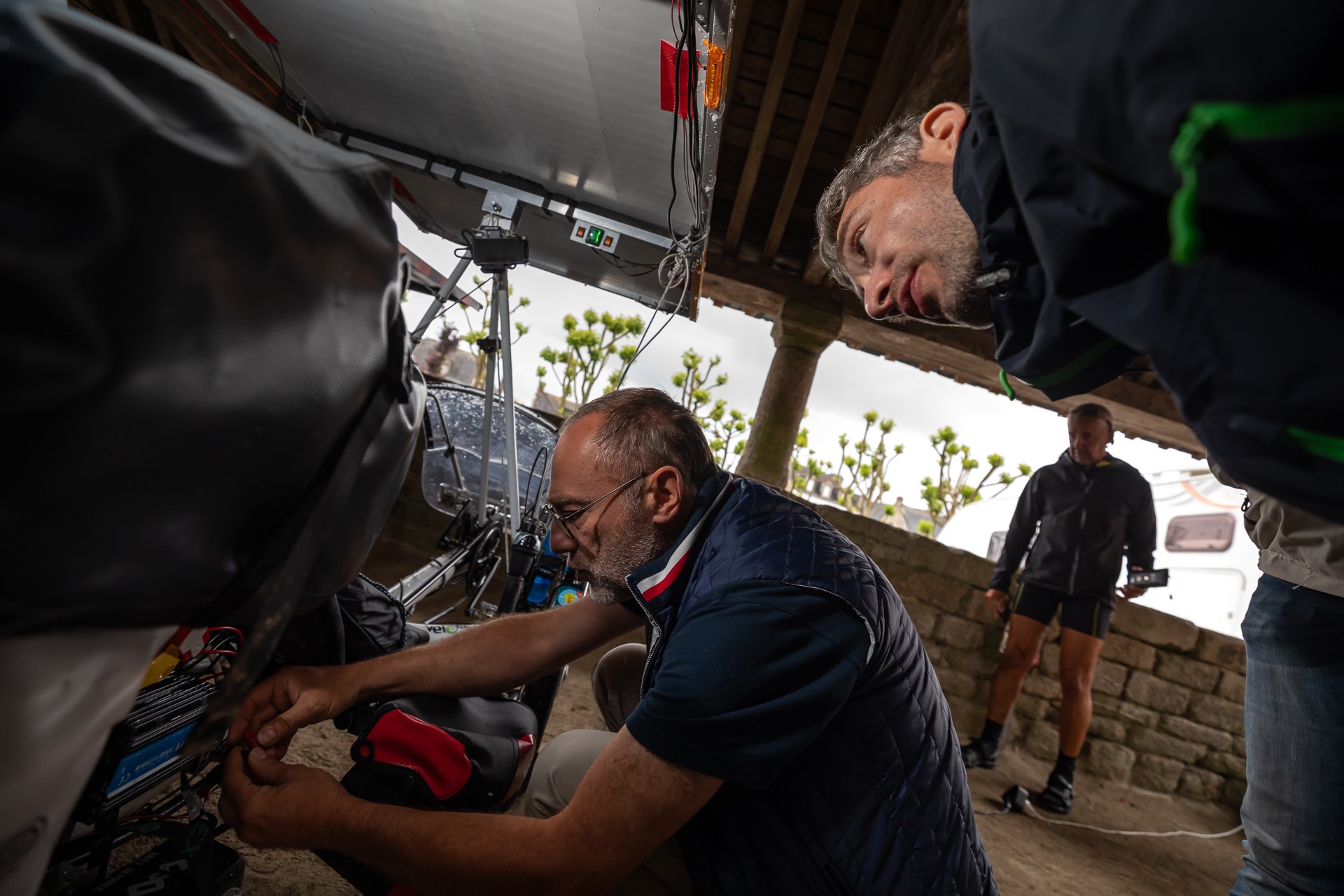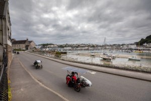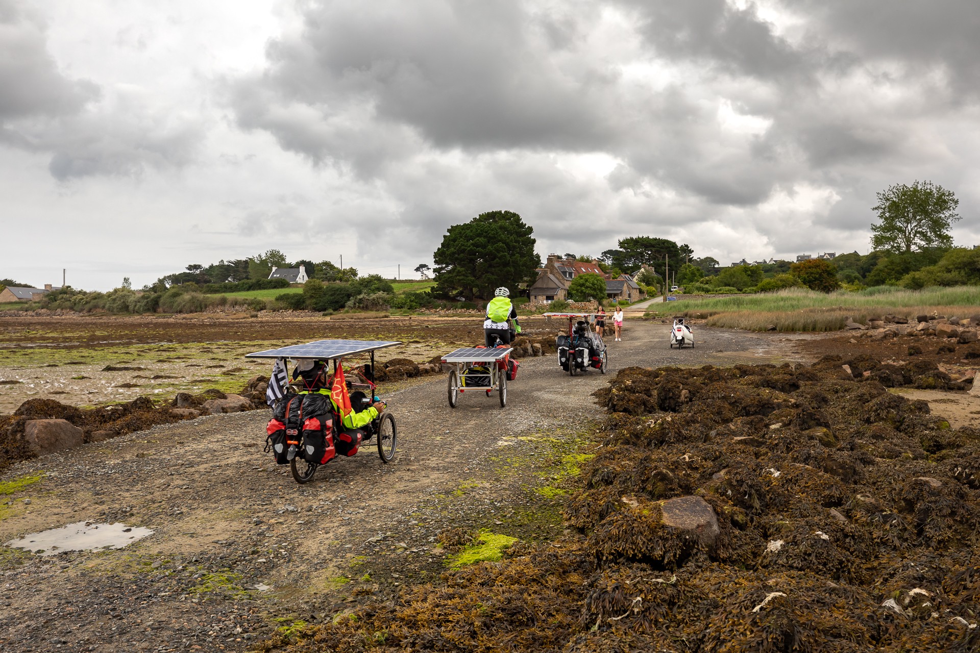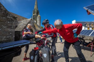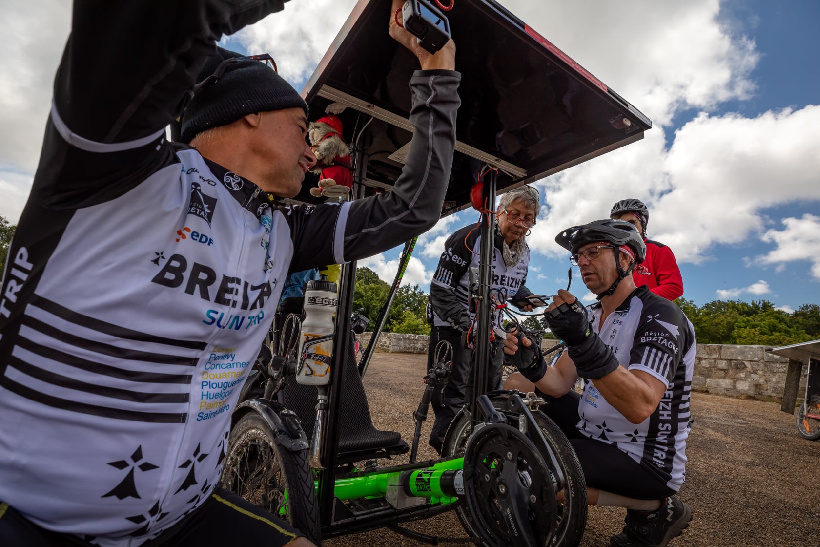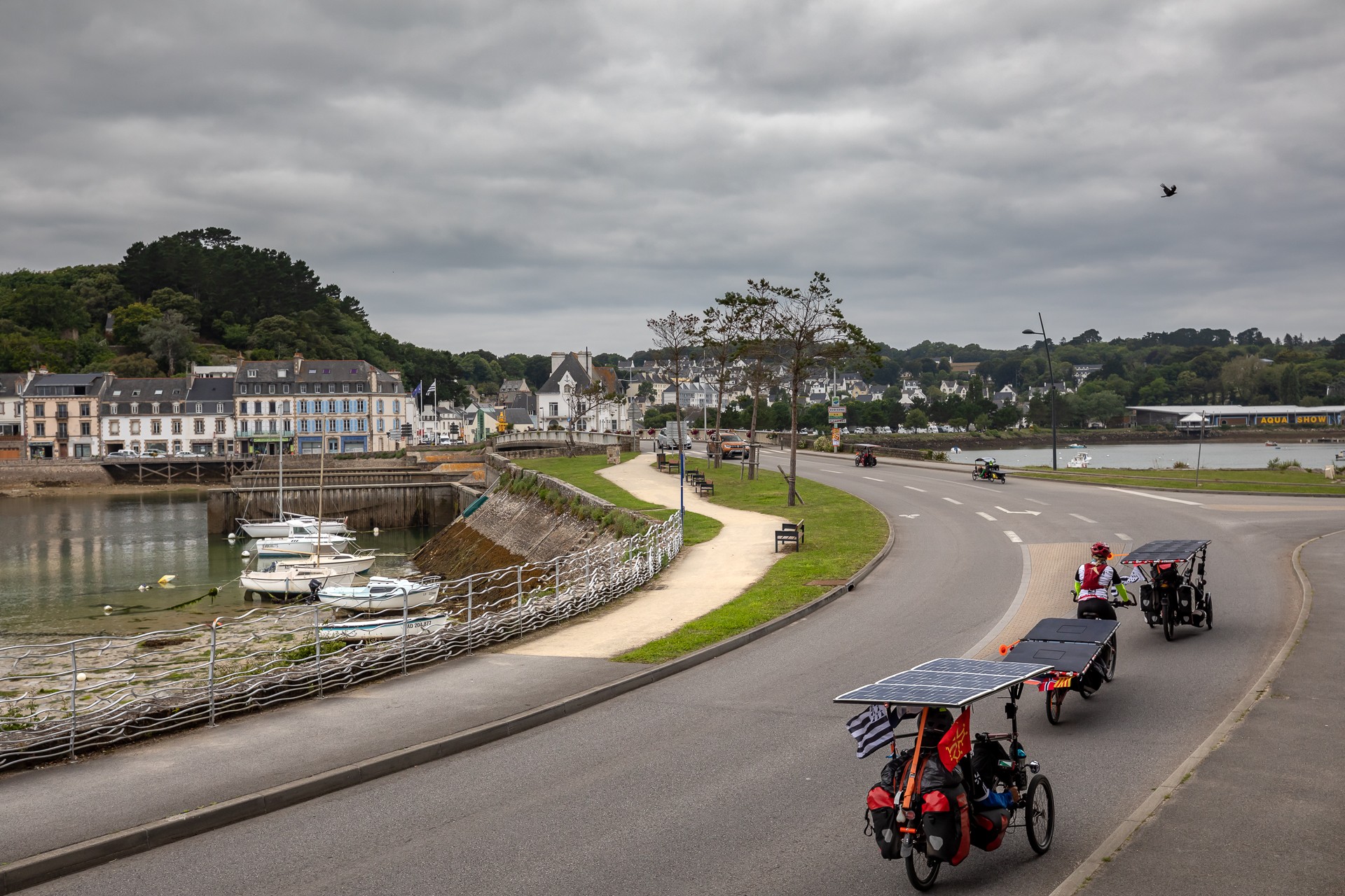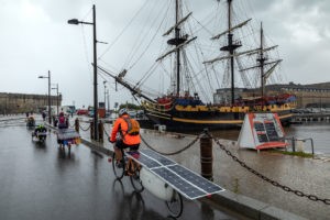 Après un passage par l’usine marémotrice EDF de Rance, le Breizh Sun Trip se conclue à Saint-Malo, sous une ultime grosse averse 🙂