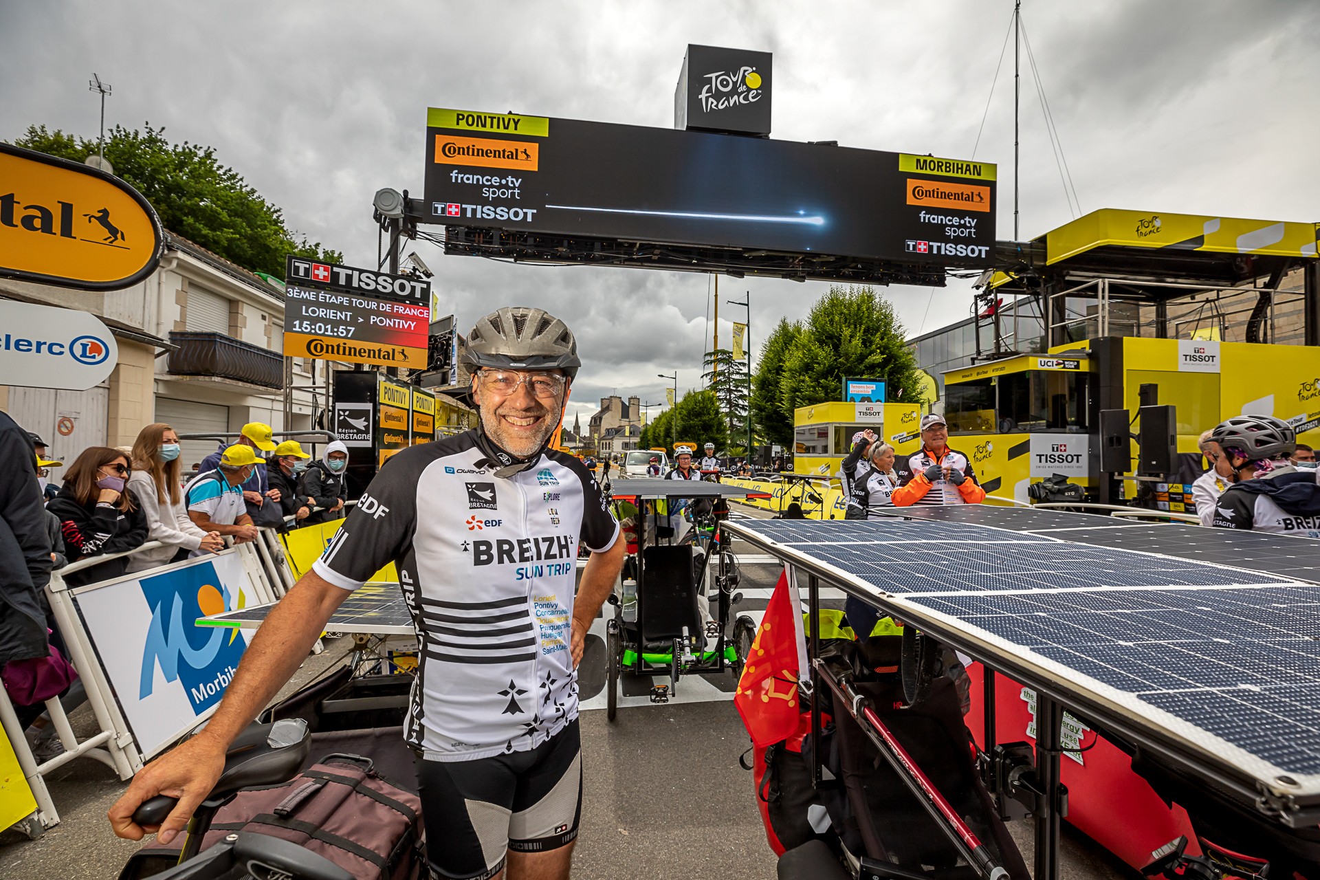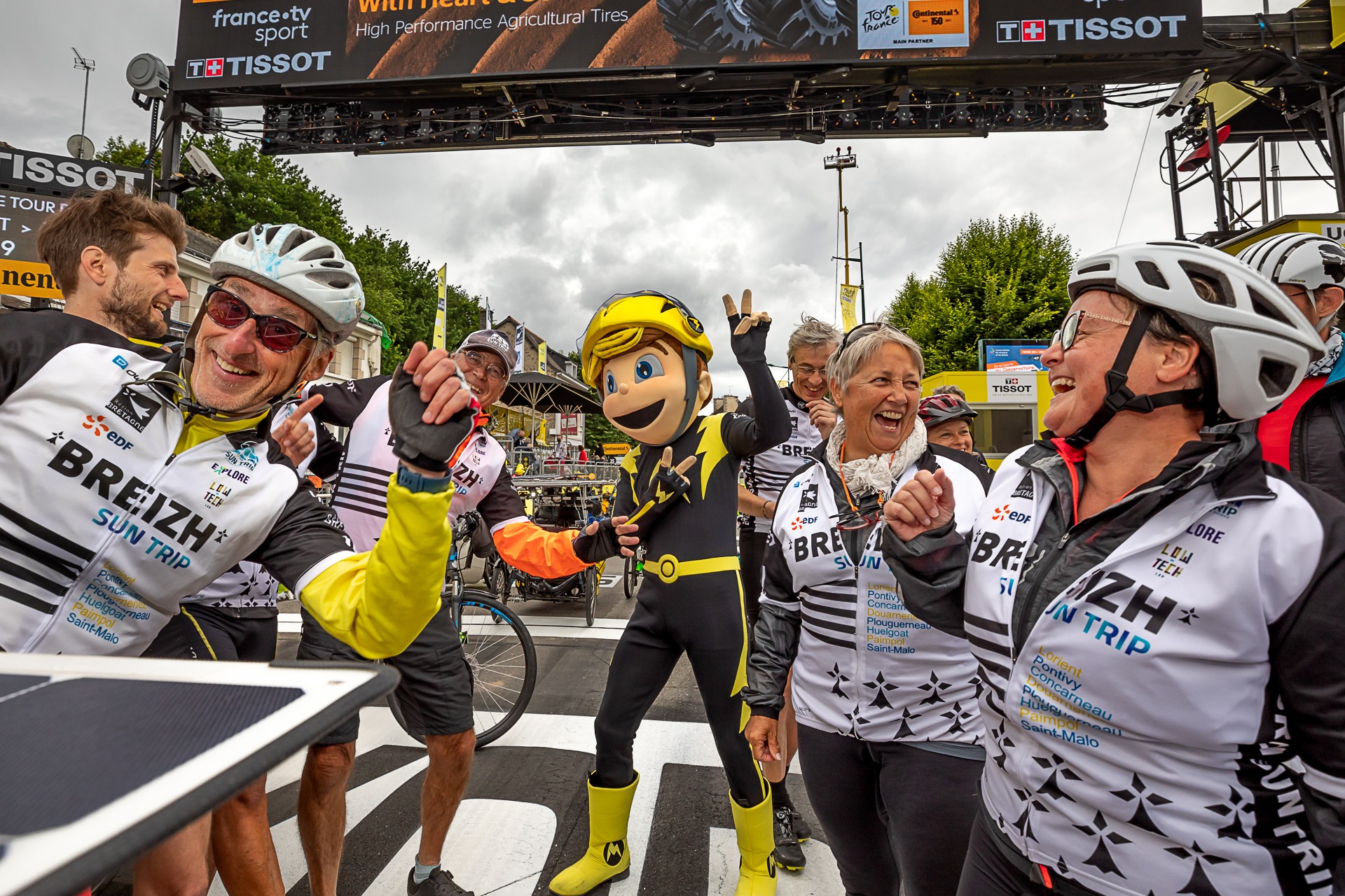 Une journée dans la légende pour le groupe du Breizh Sun Trip, sur la route du Tour de France ! Après un départ au bord de mer, le groupe prenait la direction du centre de la Bretagne, en roulant sur les 30 derniers kilomètres de l’étape du Tour à Pontivy !