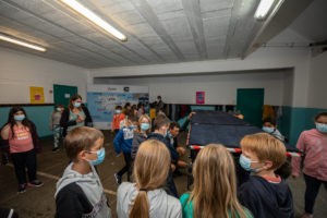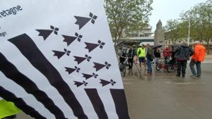 Météo défavorable mais accueil chaleureux à Paimpol, par la Maire Fanny Chappé et par les enfants de l’école Gabriel Le Bras. MERCI