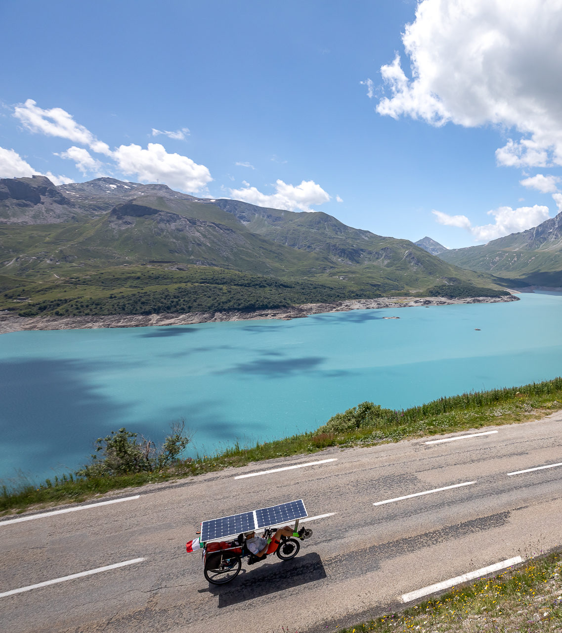 Nous découvrons les premières photos des SunTripers qui franchissent cette nouvelle frontière, et arrivent à mi-chemin de ce parcours alpin. Les paysages ne cessent de leur donner envie de continuer, ils se reposeront malgré cela une journée en gîte en bord de lac, avant de reprendre la route jeudi 30 matin.