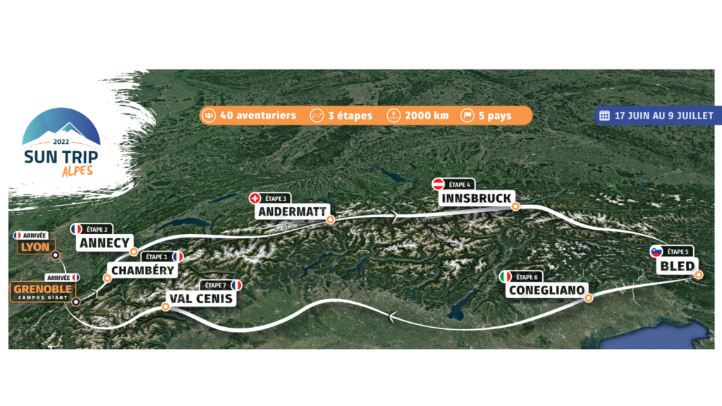 Au départ de Grenoble jusqu’à Lyon en passant par la Suisse, l’Autriche, la Slovénie et l’Italie, ce projet s’inscrit dans la dynamique internationale créée par le Sun Trip depuis 2013, en touchant un public intéressé pour vivre cette expérience de l’autonomie solaire.
