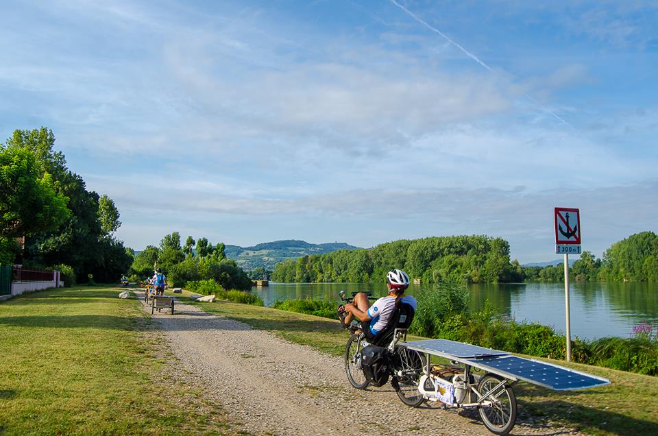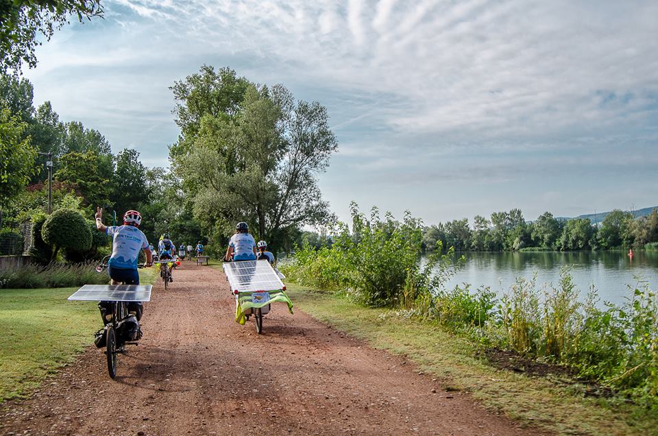 Au bord de la Saône, l’escale de Trévoux fut le dernier moment de rassemblement pour l’ensemble des participants. Le peloton a d’abord été chaleureusement accueilli par la ville en présence de Monsieur le Maire Marc Péchoux. Un beau symbole que d’accueillir nos vélos solaires pour une commune qui veut développer ses atouts cyclables !