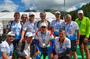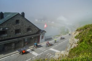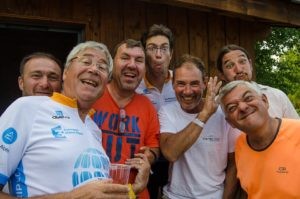 Contrairement à cette première édition, les participants devaient maintenant prévoir suffisamment d’énergie pour l’ascension le même jour du col du Grand Saint-Bernard séparant l’Italie de la Suisse. Dans des paysages grandioses, les cyclistes déjà rodés à la montagne se sont fait plaisir et presque tous ont pu atteindre le gîte Casa Don Angelo, lieu d’escale facultative pour la nuit. Et là-haut, surprise ! Adalberto, doyen de la cuvée 2015 nous a rejoint une fois de plus pour une courte accolade riche en émotions avant de rentrer chez lui vers Santhià, 40 kilomètres plus bas dans la plaine du Po.