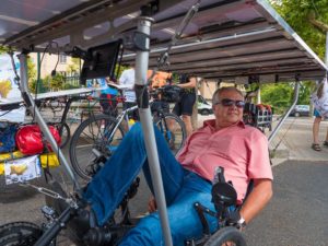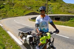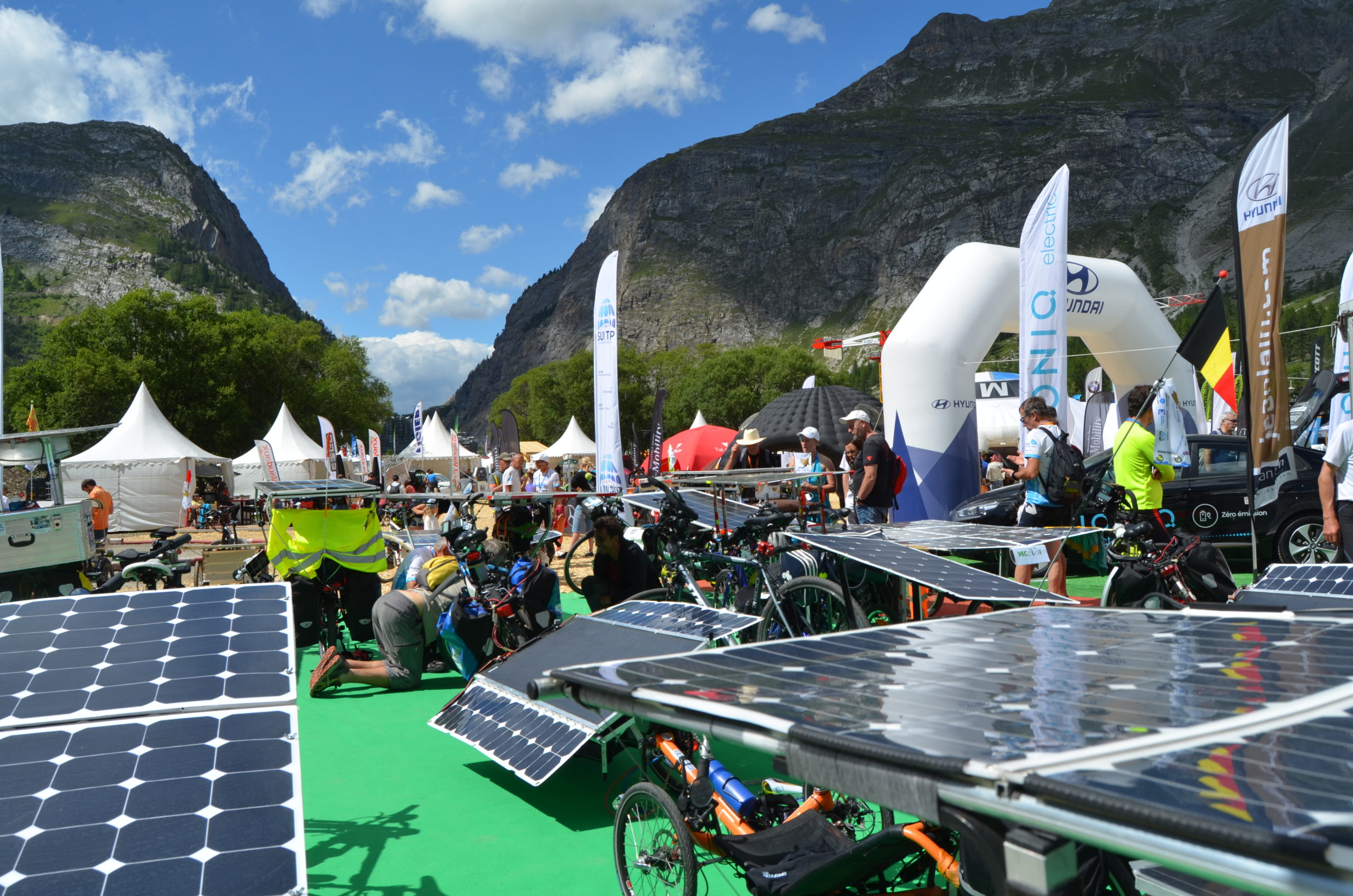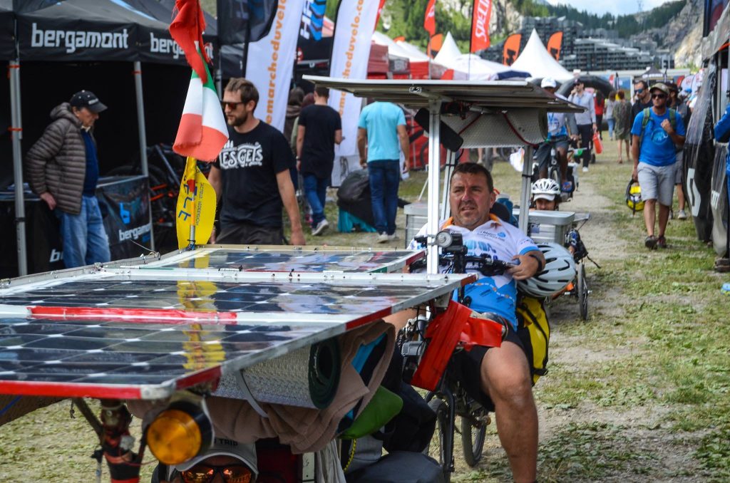 Au Salon du véhicule électrique et hybride de Val d’Isère, nous avons pu expliquer notre démarche auprès d’un public curieux et enthousiaste. L’entrée en grande pompe sur le salon fut ouverte en musique par Arno Liégeon, ancien participant de l’édition 2015 vers la Turquie. Ce n’était pas le seul ancien présent puisque le champion Bernard Cauquil et le doyen Adalberto Cravero nous ont fait grâce de leur présence, à notre grand plaisir. Plusieurs fans du Sun Trip ont exprimé leur désir de prendre part à l’édition 2018 Lyon-Canton et étudiaient scrupuleusement les machines présentes tout en questionnant les participants du Sun Trip Tour sur leur expérience. Il s’agissait de l’unique journée de pause sur cette édition et tout le monde en a bien profité pour recharger tant les batteries que les muscles!