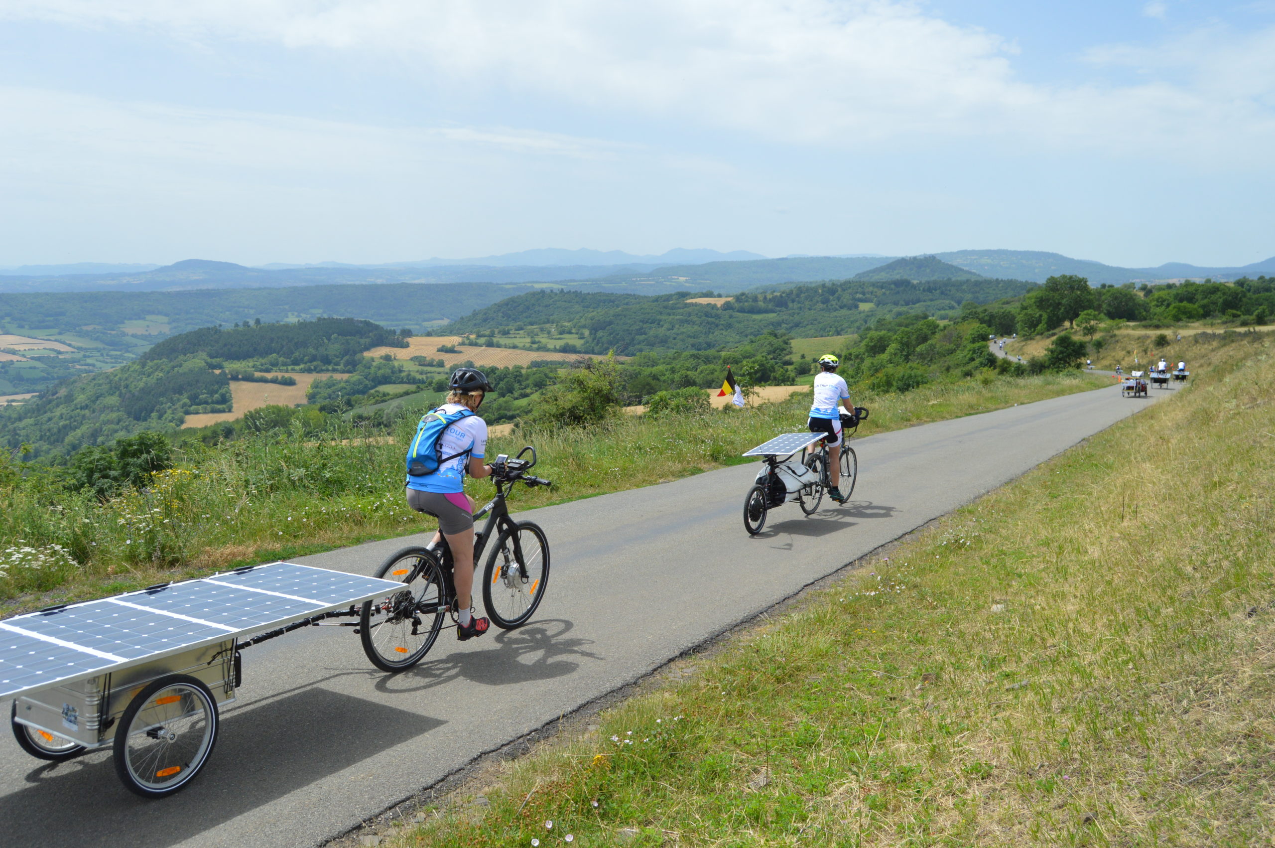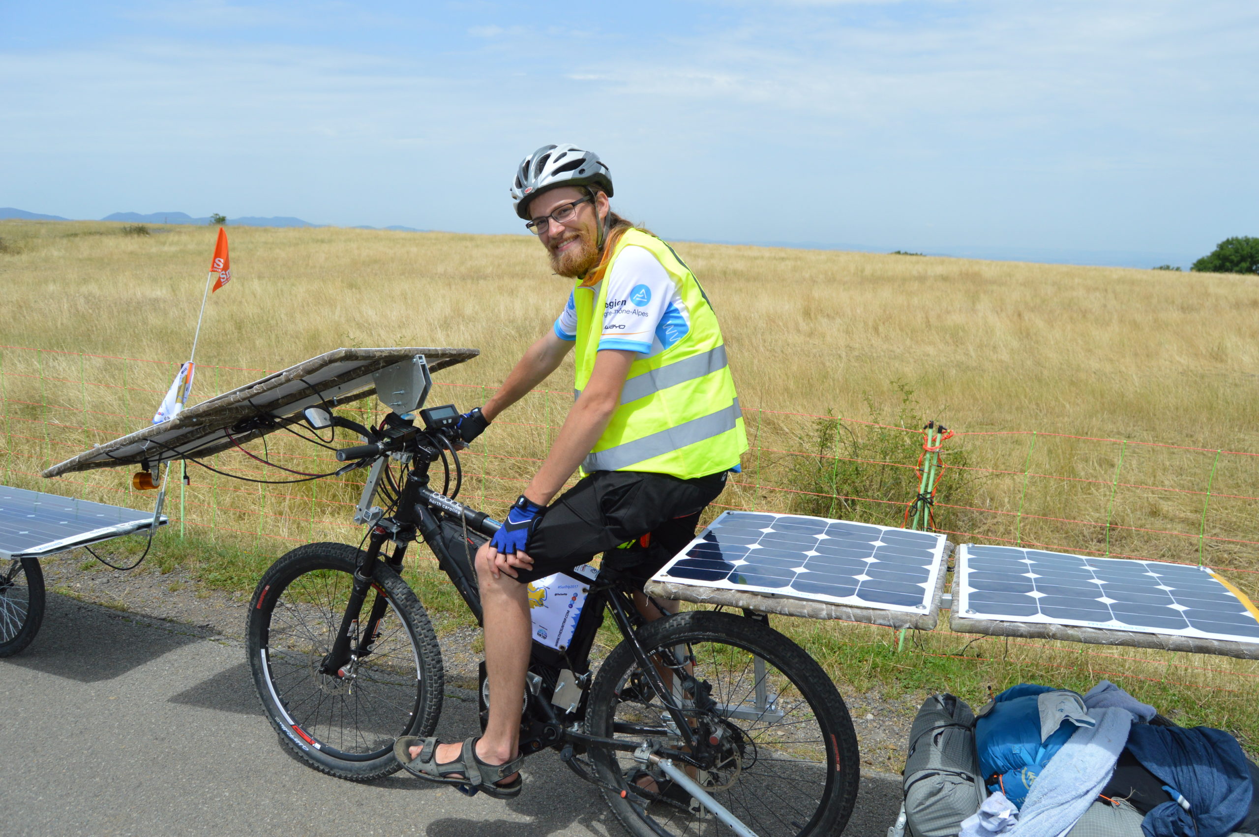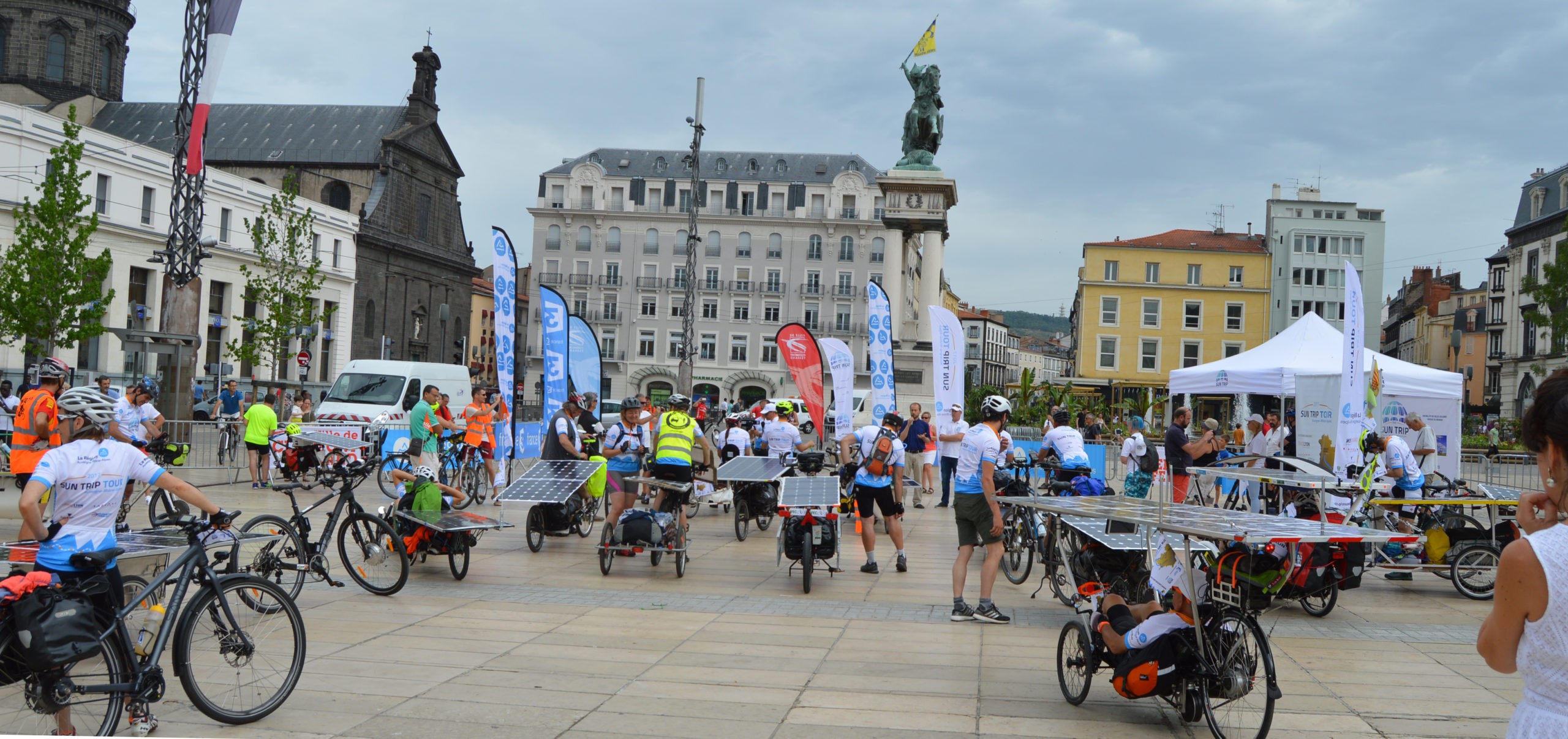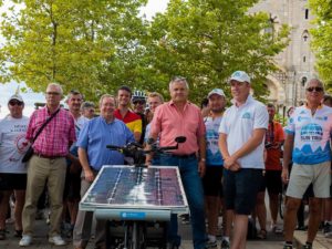 La deuxième étape du Sun Trip Tour 2017 a été marquée par la présence au départ du Puy en Velay du Maire de la ville mais aussi du Président de la Région AURA, Laurent Wauquiez. Ce dernier n’a pas manqué de soutenir la démarche du Sun Trip, une démarche “d’innovation, de technologie et d’environnement”. Laurent Wauquiez évoquait aussi l’objectif fixé de faire de la Région AURA une référence européenne en terme d’infrastructures pour l’itinérance à vélo, “avec la création de quelques 400 km de voie verte dans les années à venir”.
