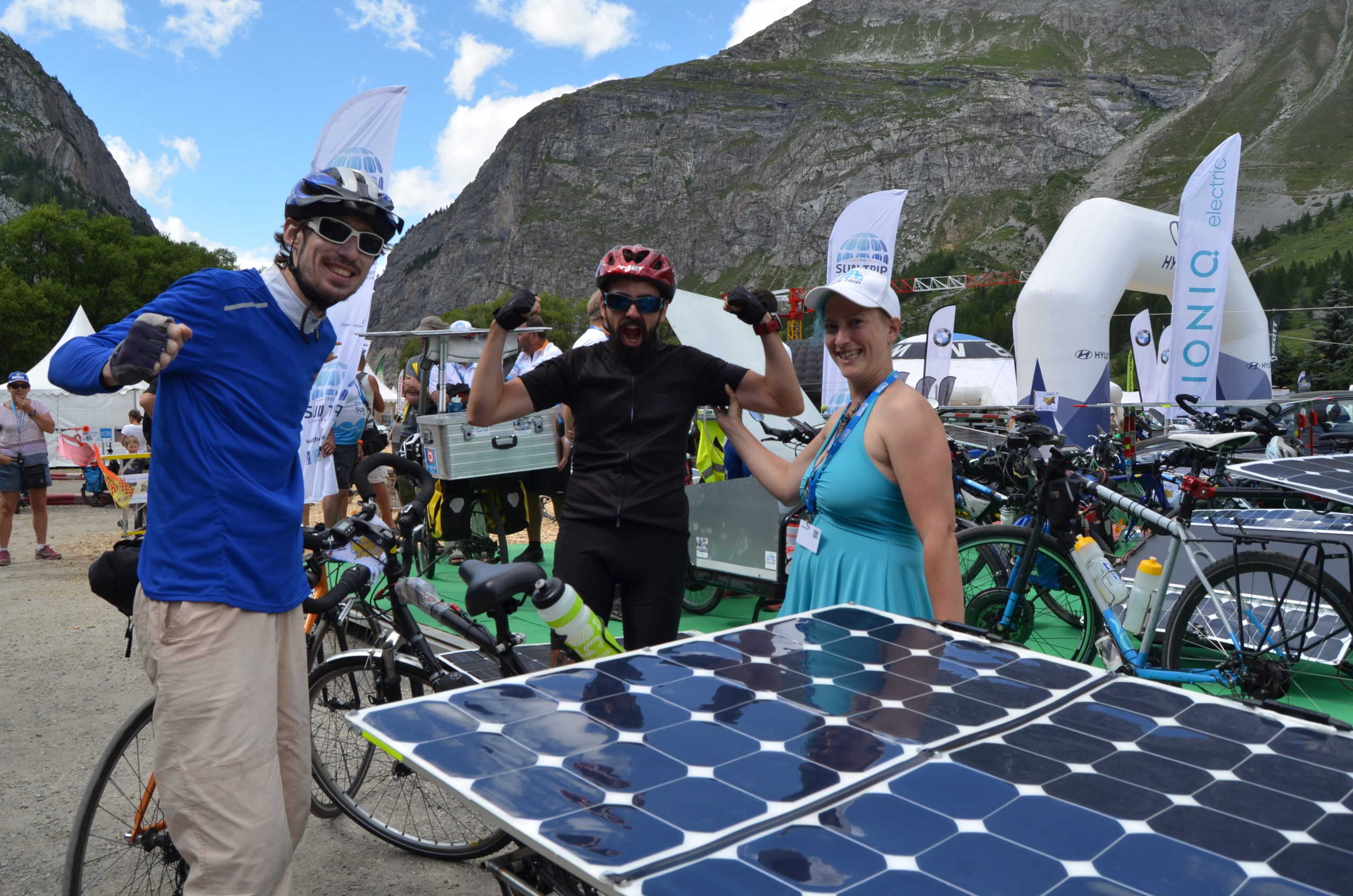 Toujours dans le cadre du Salon du véhicule hybride et électrique de Val d’Isère, le Sun Trip Tour a pris un départ du centre-ville en simultané de la montée en VAE de l’Iseran. Ce fut donc l’occasion de dire au-revoir à nos amis, fans et anciens participants qui nous avaient rejoint sur cette étape.