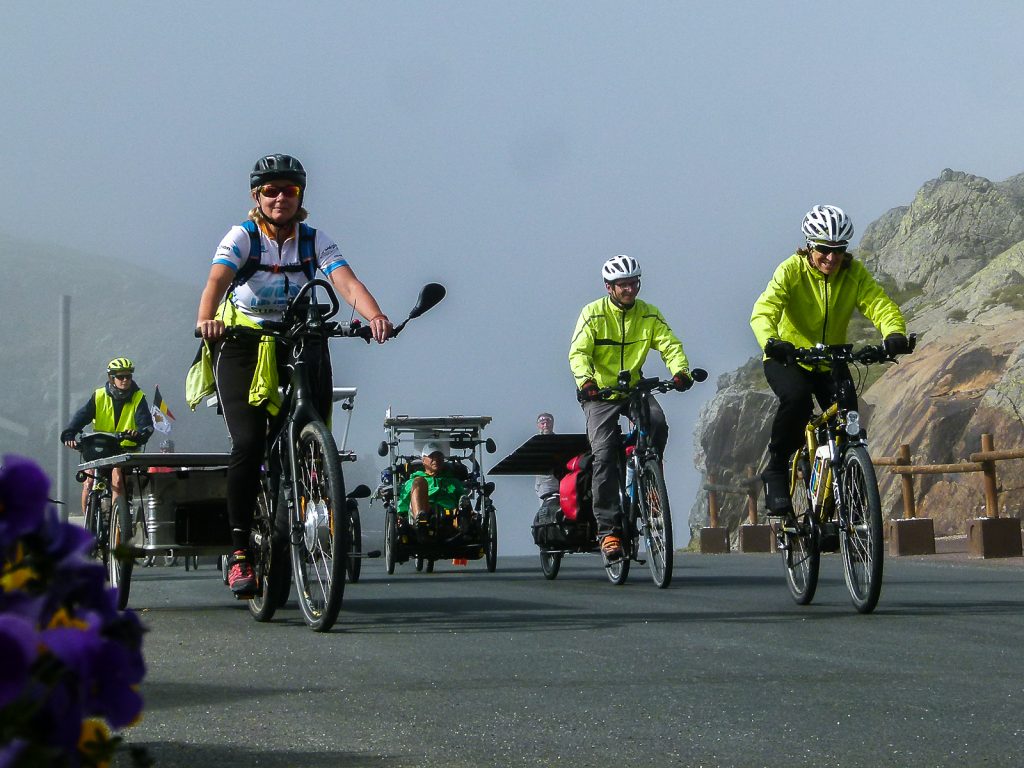 Dès la première journée, la solidarité entre les participants était aussi au rendez-vous. Des petits groupes se sont formés pour mieux s’orienter et s’entraider. On saluera l’action de l’équipe Béatrice, Yannick et Zab, revenus sur leurs pas au niveau du col de la Croix des Gardes pour venir en aide à Jean-Louis Machado, Suntripper porteur d’un handicap et déjà victime d’une crevaison.