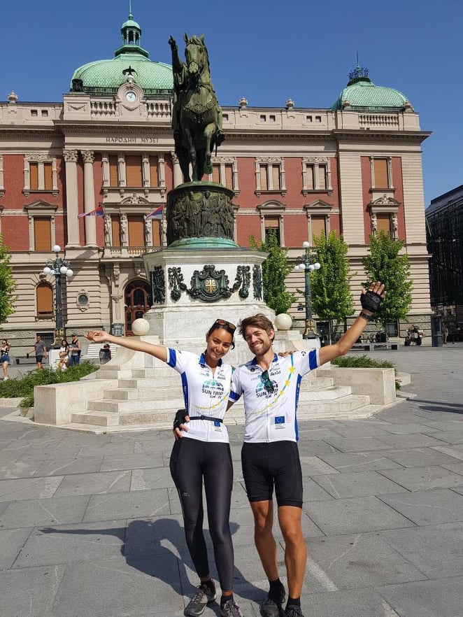 Sofia & Nicolas realized a very special adventure by visiting successively Brussels , Copenhagen , Stockholm , Helsinki , Tallinn , Riga , Bucharest , Belgrade , Zagreb and Ljubljana !