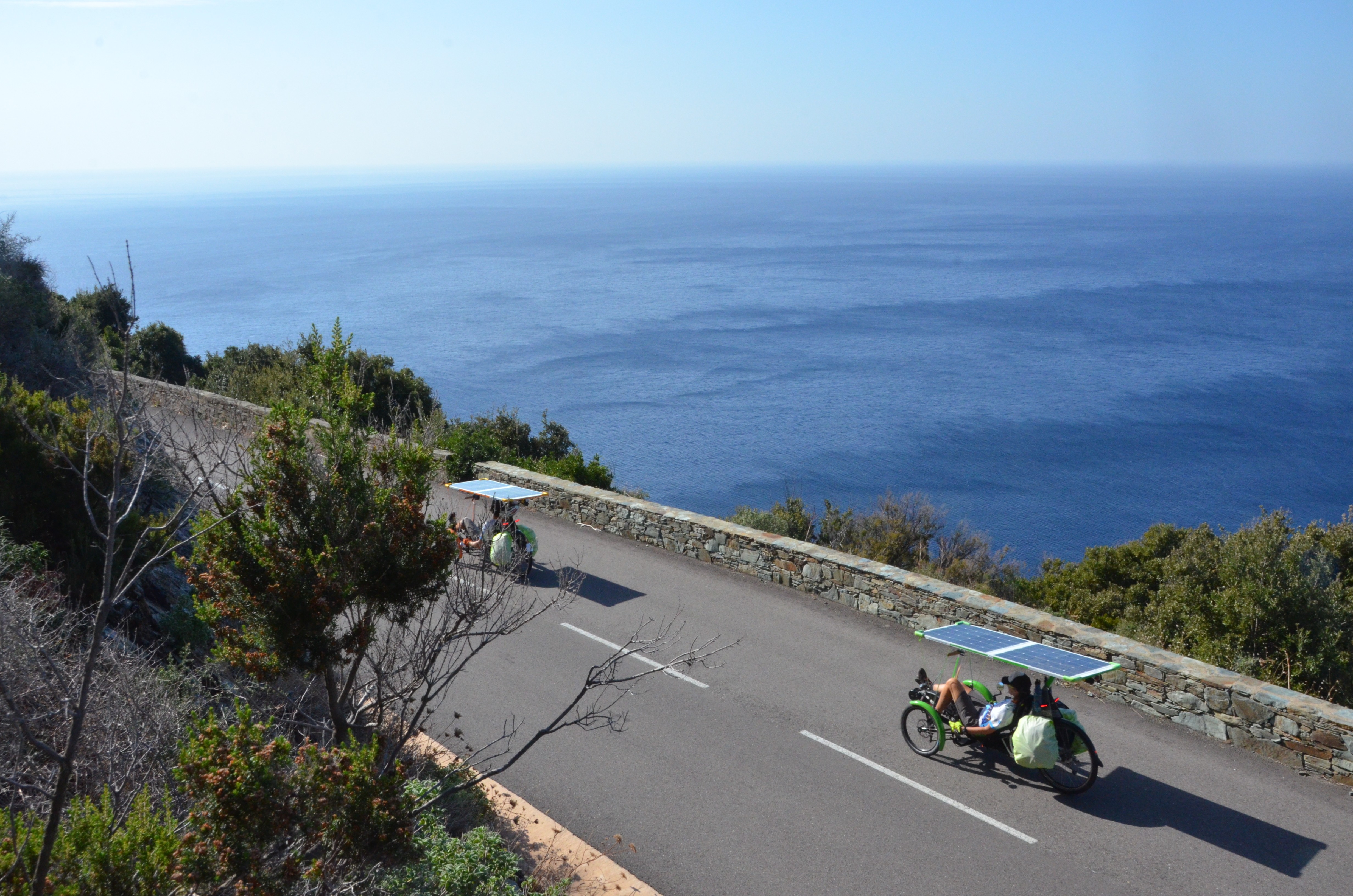 - Jean-Marc: “a superb crossing of Corsica from North to South by solar bike. Sea, Mountains, smells, colors…and sun! Ideal to discover Corsica, and in my case with Stéphane Clémot, an extraordinary guide!”