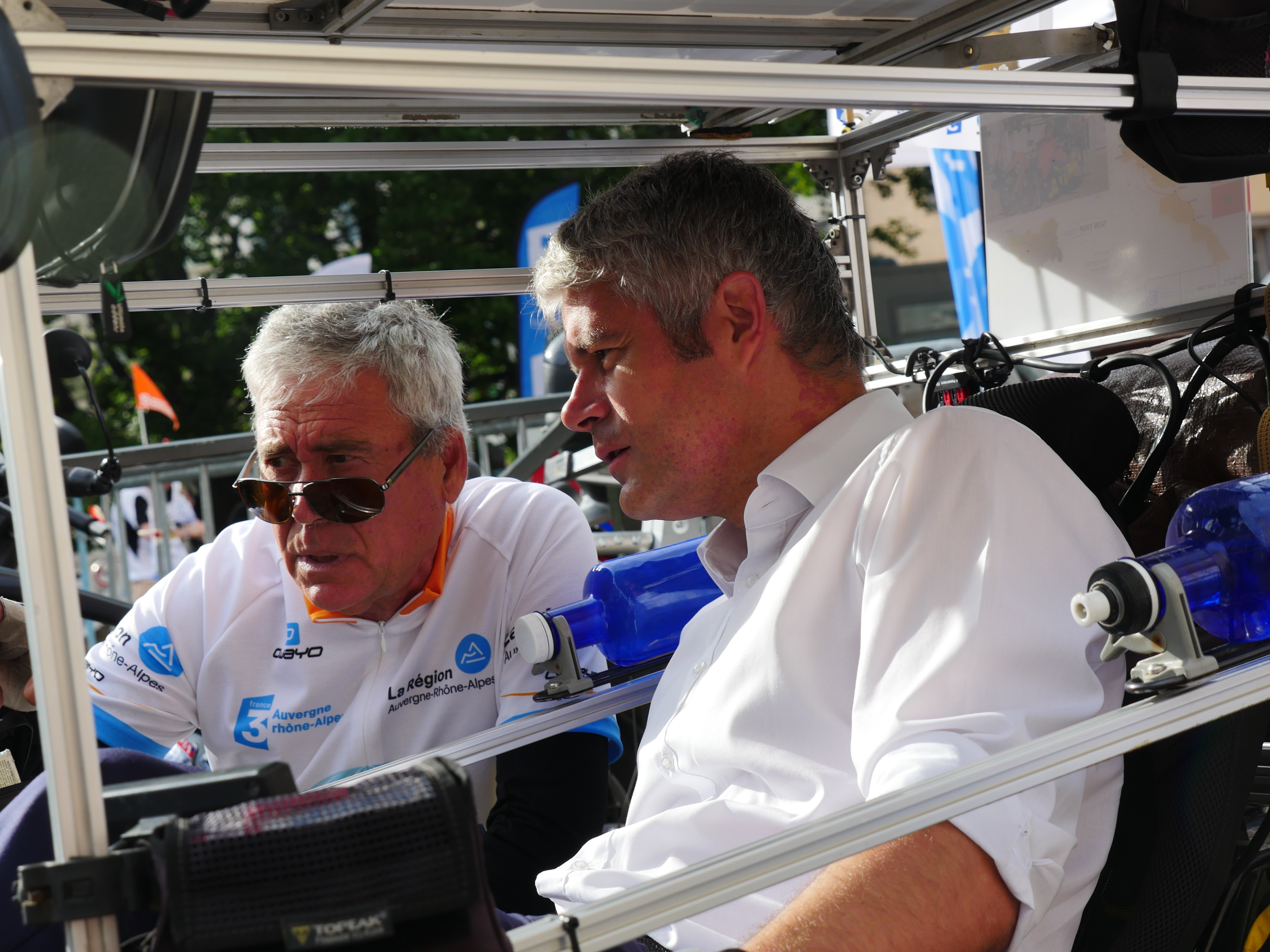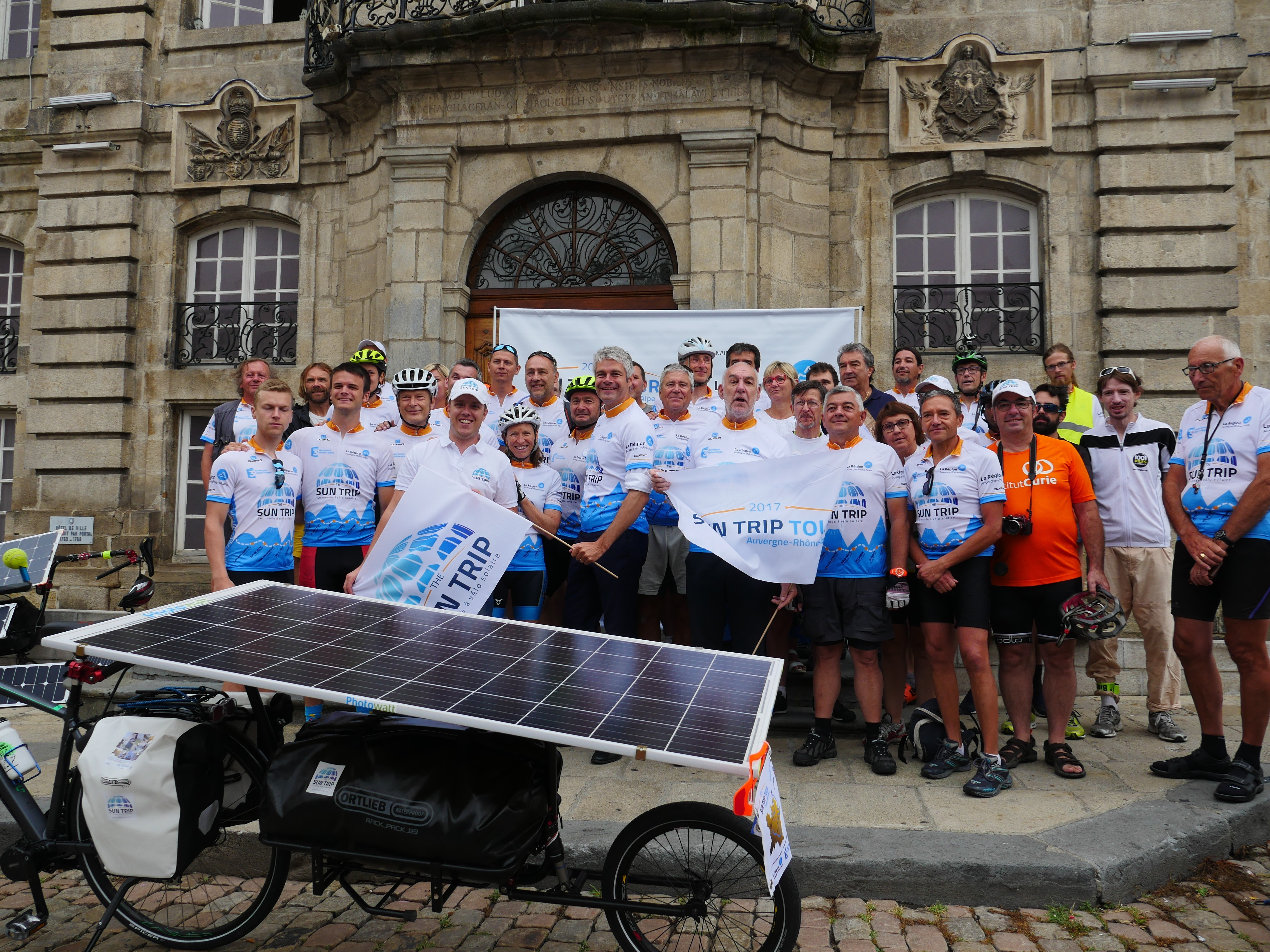 The Sun Trip Tour 2017’s second stage started with the guest appearance of the mayor of Puy en Velay but also with the president of AURA Region, Laurent Wauquiez. The latter strongly supported the idea of the Sun Trip, underlining its values of “innovation, technology and environment”. Laurent Wauquiez also spoke about the AURA Region’s goal to be a European reference when it comes to cyclotourism, “with the creation of more than 400 km greenways in the years to come”.