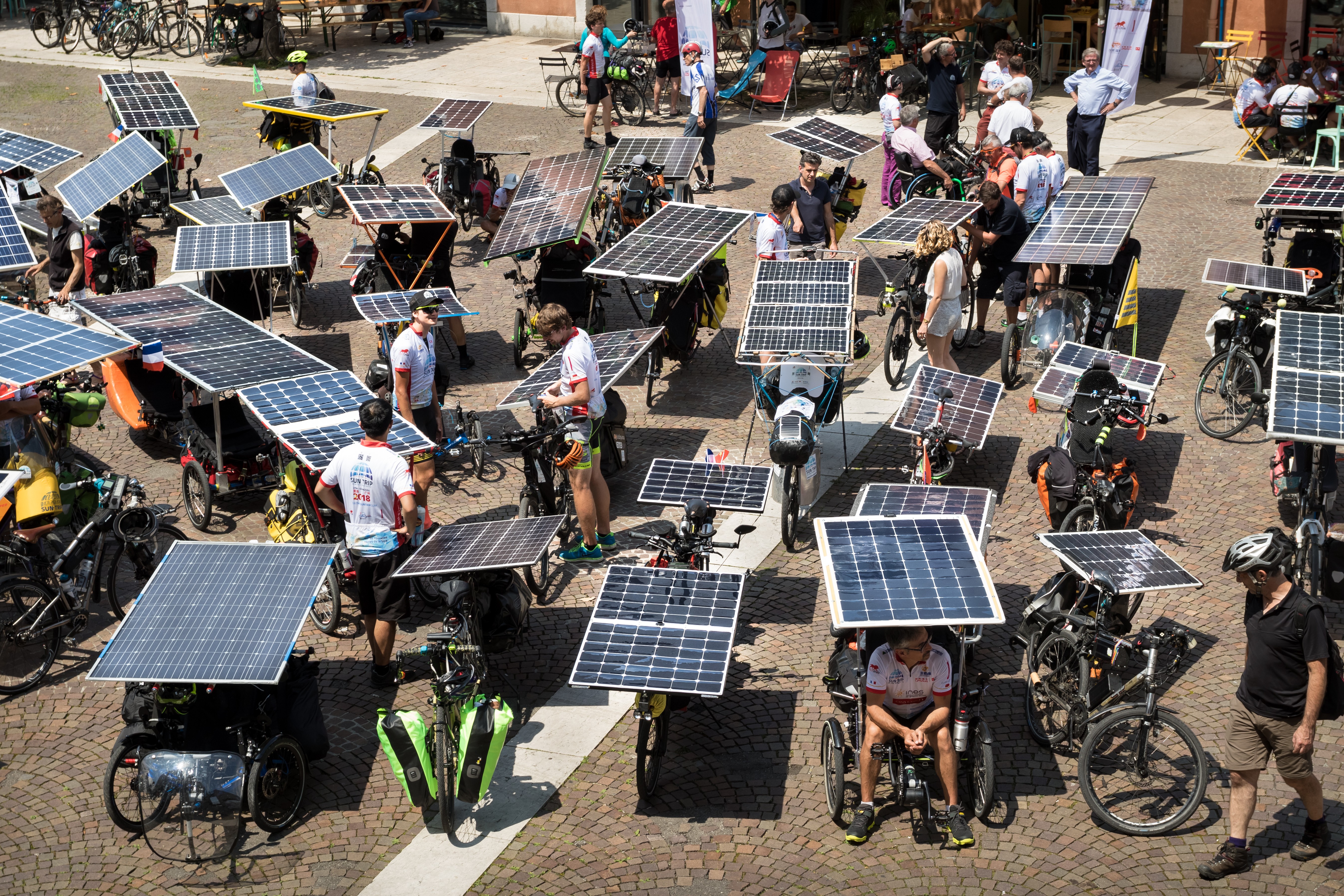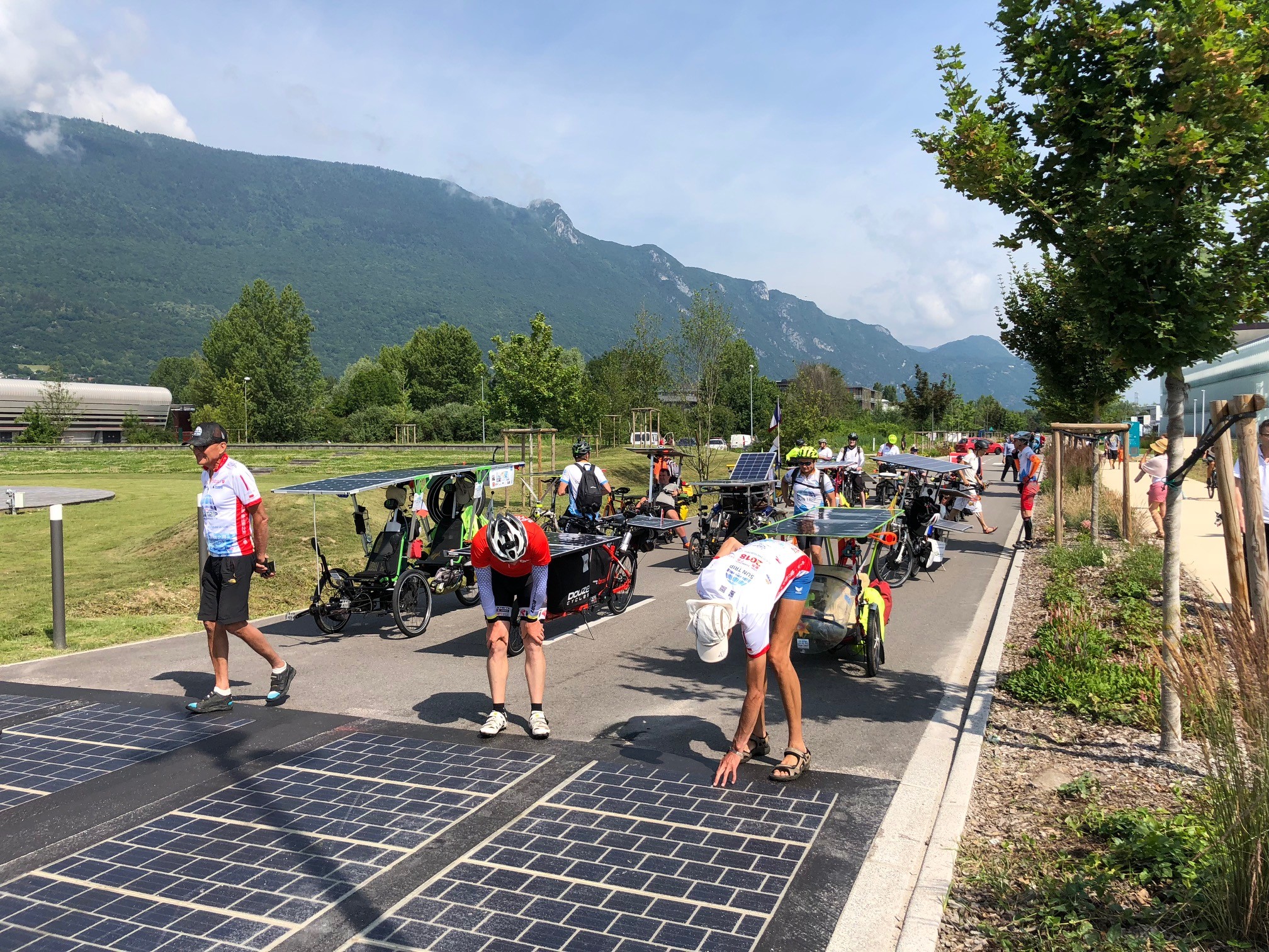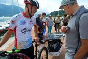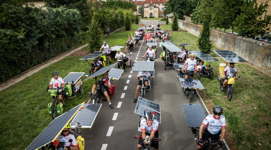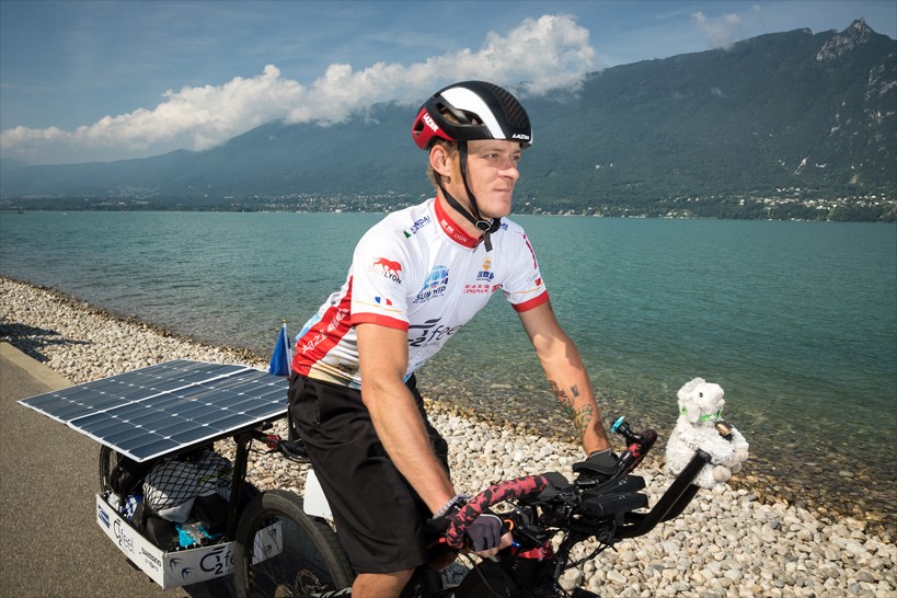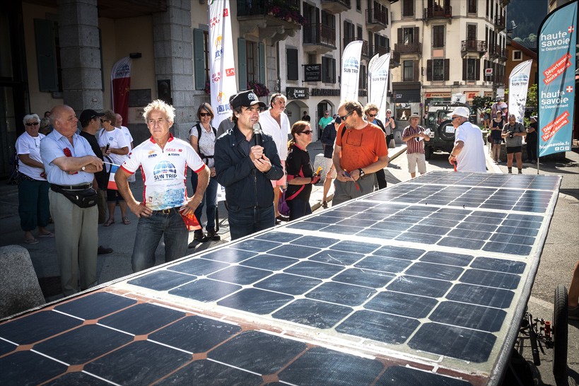 Participants ride for the following three days as a loose pack in the mountains of Savoie Mont Blanc, through Savoie Technolac, Aix les Bains and Chambéry. Adventurers are free to take flight starting from Chamonix on June 19 where the start proper takes place. From there, they each ride freely according to their route choices, without assistance, propelled solely by their own muscles and solar energy. For the next 12,000 km, they can only be helped by the people they meet on the road. Their only link with the organizers and between them is a SPOT geolocation beacon for safety and in case of emergency. What an exciting step into the unknown!