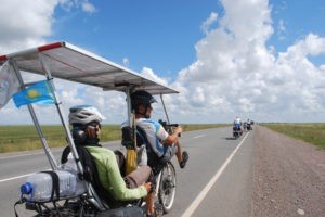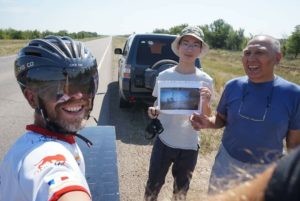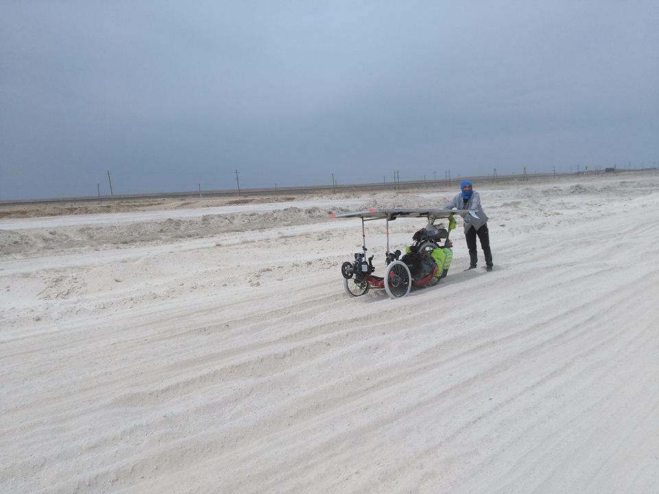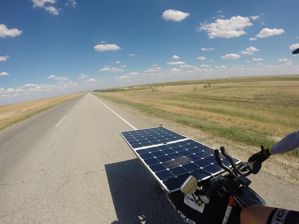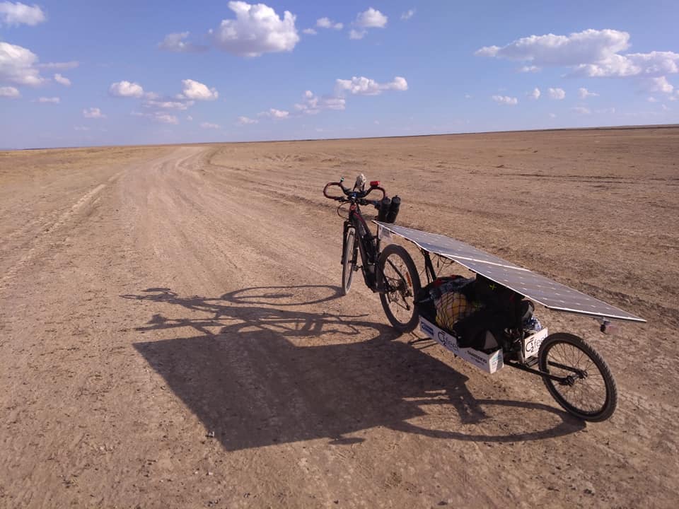 Au delà de ces belles images le Kazakhstan sera pour beaucoup une monumental épreuve. Quand le vent ne joue pas le jeu dans ces contrées, même un vélo solaire ne permet pas de faire des exploits. Parmi les aventuriers en difficulté au Kazakhstan, deux exemples.