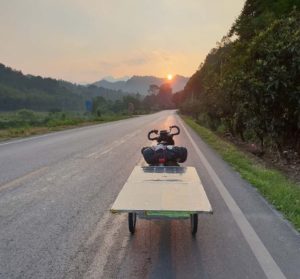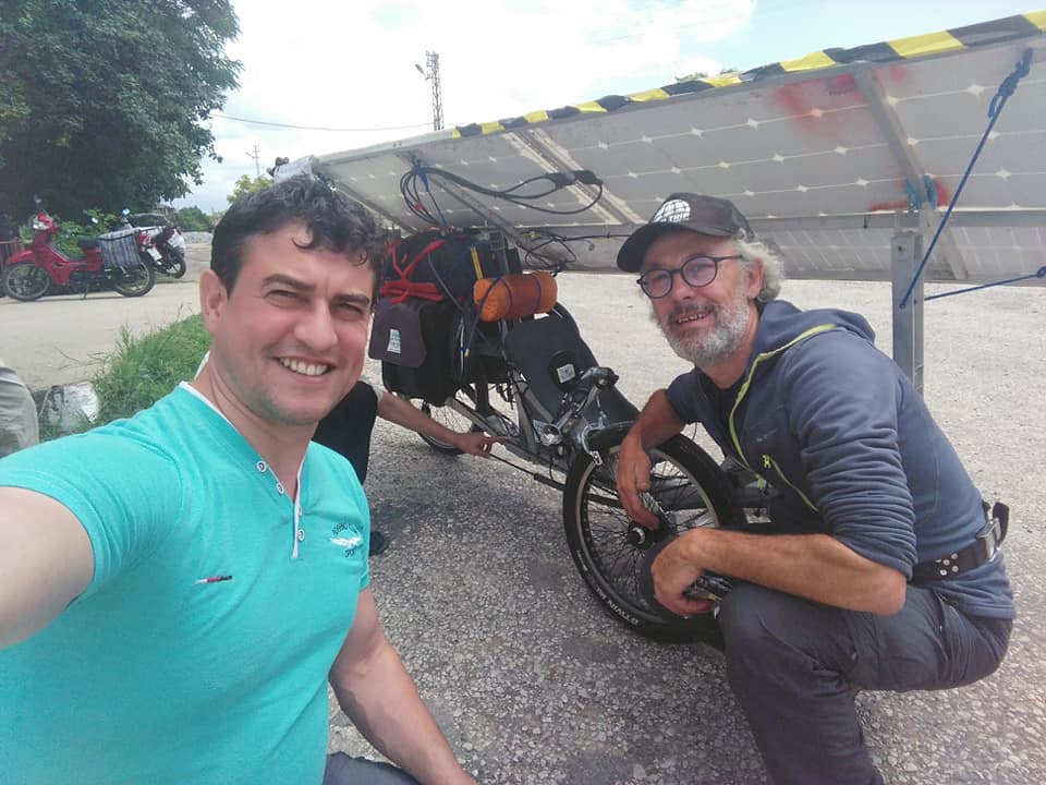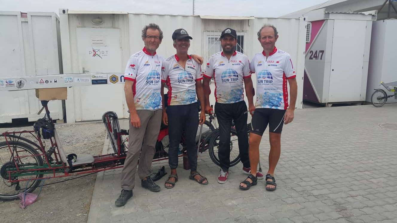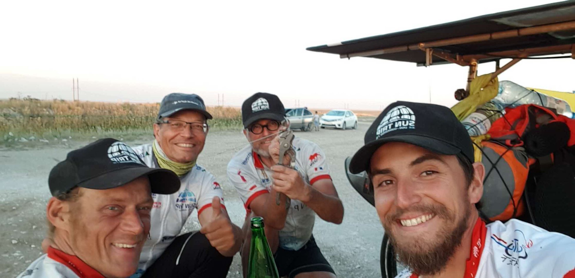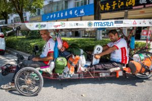 Bernard et Yann Cauquil, un duo père-fils très attendu car papa n’était autre que le vainqueur sortant du Sun Trip 2015 ! En 2018 Bernard faisait le choix de revenir avec son fils, sur un fabuleux tandem construit par lui même. Sur la route jamais ils n’arrivaient à tenir le rythme acharné des premiers, mais par leur histoire ils étaient des vrais acteurs de l’aventure. Puis le problèmes techniques se sont fait trop pressants et la steppe Kazakh a fini d’achever leurs rêves de Chine. Au milieu du Kazakhstan, impossible de réparer un roue qui part en lambeau, c’est l’abandon. Le champion en titre sort du jeu.