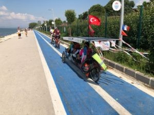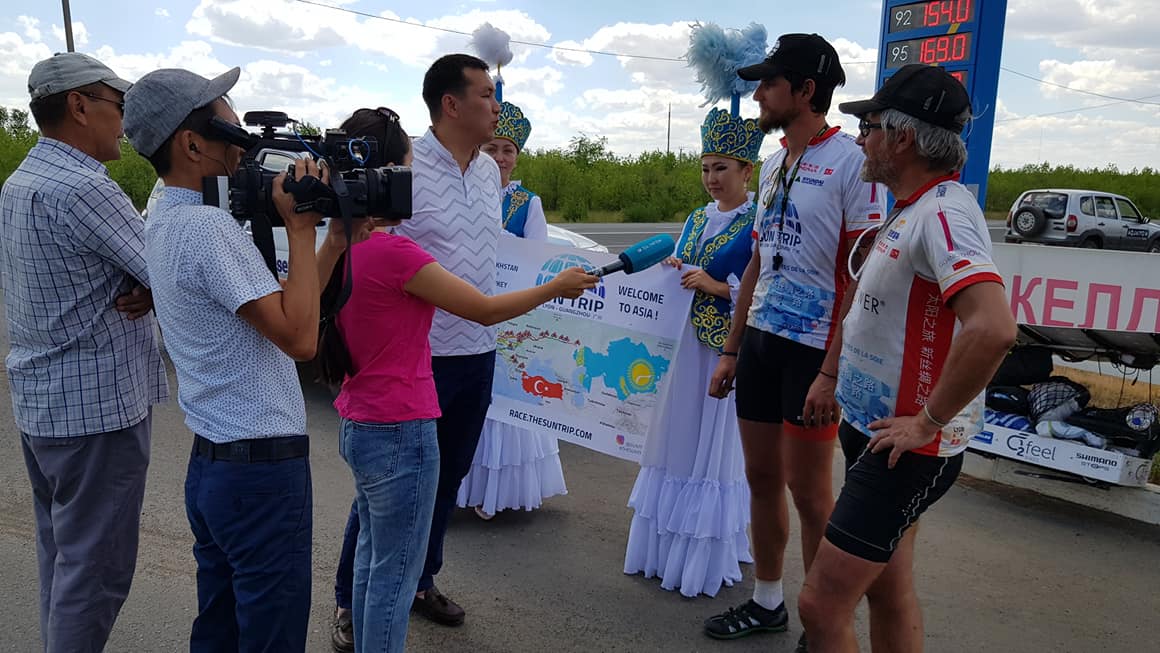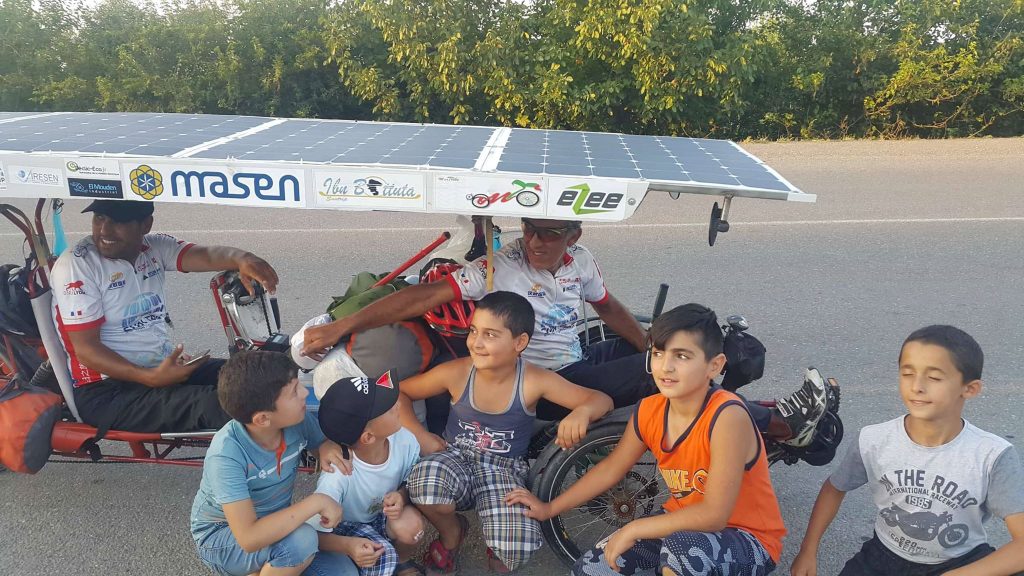 On July 5, thus a little over 15 days after the start proper, all participants are still under way. The Sun Trip enters Asia in Kazakhstan and Turkey simultaneously. As adventurers change continent, the sun is finally shining brightly! Consequently, the solar bikes performances are enhancing… But the climate also gets warmer! We are getting to the heart of the matter : over 3000 km in the Kazakh steppes.