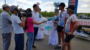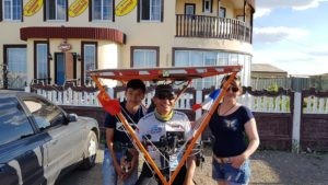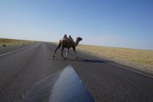 Quelques milliers de kilomètres plus au Nord, sur les routes du Kazakhstan les aventures en tout genre n’auront pas manquées. Françoise Denel fête ses 70 ans le jour du passage de la frontière, Laurent Souchet se fait inviter dans de très nombreuses familles, Romain Neauport tente (sans un grand succès en terme de temps gagné) un itinéraire en pleine steppe sans routes asphaltées, plusieurs aventuriers sont attendus par la route par de fidèles fans du Sun Trip, les frères Colle sont percutés par une voiture et ramenés en arrière par la police, le duo marocains se retrouve bloqué à la sortie du pays du fait d’un problème de visa, Askar, SunTripper 2013 traverse le pays pour aller saluer son pote Stéphane Bertrand, etc… Le passage en terre Kazakhe aura été à la hauteur de l’expérience initiatique de 2013. Assurément le Sun Trip est ici sur un terrain propice !