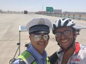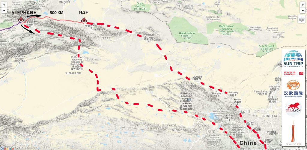 Derrière le leader, le course au podium connaîtra des faits marquants à l’extrême Ouest de la Chine. D’abord avec la prise de risque de Stéphane Bertrand, alors en 2ème position, qui tentait un itinéraire audacieux dans le Xinjiang pour finalement se faire bloquer par la police ! Passage interdit aux étranger, demi-tour imposé et 4 jours de perdus ! L’organisation lui donnera un bonus de temps à valoir à son arrivée, mais ensuite de cet “incident de course” Stéphane sera ralenti par plusieurs problèmes mécaniques sérieux.