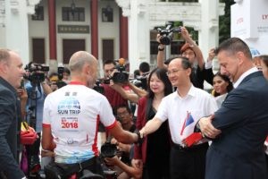 A week before the official departure from Lyon, Nicolas Hulot, French Minister of Ecology, was symbolically launching this great adventure from Paris in the presence of the Ambassador for China in France, a key moment to get off on the right foot and demonstrate the Sun Trip’s significance in the French-Chinese relations.