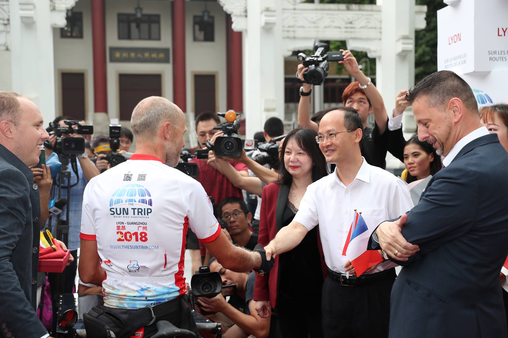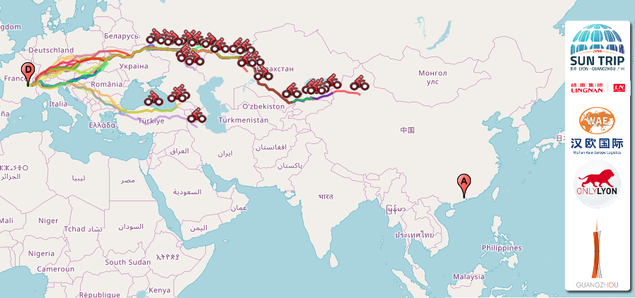 The festive start is given under the sun in the presence of Chinese and French officials at the Place des Terreaux within the framework of the Lyon-Canton (Guangzhou) co-operation 30th anniversary on June 15, 2018. The twinned cities’ involvement was capital into making this cross-continental event a reality. With their support, the Sun Trip gains in credibility and can imagine a repeating the Lyon-Canton course for the years to come, building it into a world-famous event.