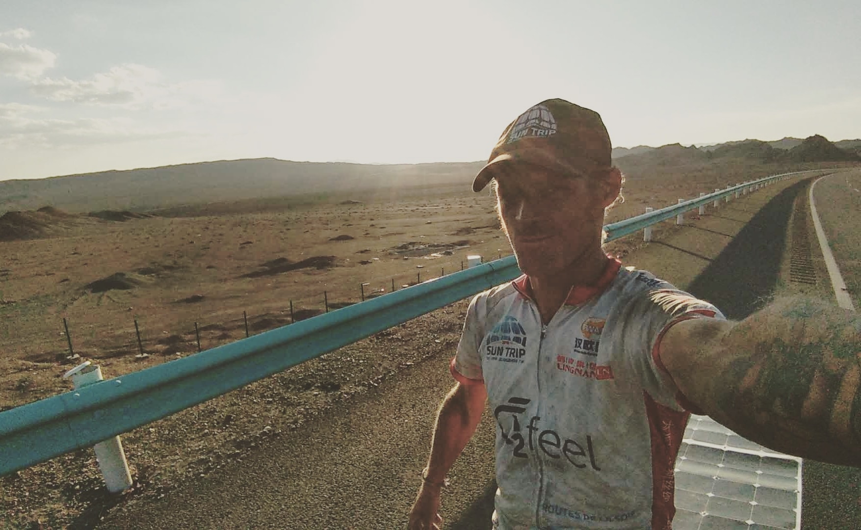 1500 km derrière, Paul Baudry, greffé du cœur et participant à part entière, connaît lui aussi de grandes difficultés dans ce pays où les températures dépassent bien souvent les 45°. Le vent a tourné et rend infernal la progression. Tous les participants autour de lui sont aux abois. Dans la tête de Paul l’idée de l’abandon fait rapidement son chemin. Jusqu’à là son aventure avait été remarquable en tout point. Il avait même été reçu par le ministre des sports Ukrainien et par un chirurgien du cœur lors de son passage à Kiev. Après avoir gravi un sommet de plus de 6000 mètres dans les Andes grâce à son nouveau cœur, Paul voyait dans le Sun Trip Lyon-Canton une nouvelle occasion d’exprimer son envie de vivre. La rudesse de la steppe Kazakh met fin au rêve. Paul décide de stopper sa course à Almaty, 200 km avant la Chine, fier de son parcours.