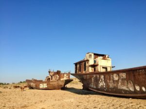 François Medalle et Gilles Coural, Cathy & Didier Pozzodon, Corinne Courvalin, Jean-Claude et Alain (abandon peu après Aktau sur incendie du vélo) Viguier ou encore le belge Grégory Lewyllie étaient de ceux qui passeront par là, en longeant par le Sud la Mer d’Aral. Grégory étant le seul à faire le détour pour quelques clichés. L’aventure était au rendez-vous !