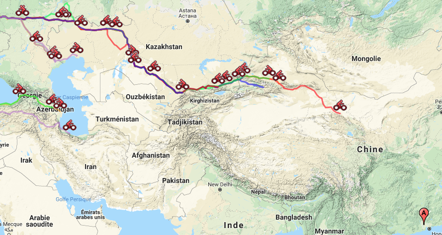 Ces routes du Sud rejoignaient les routes du Nord dans l’Est du Kazakhstan puis sur les difficiles routes de l’Ouzbékistan. Ici pouvaient se recroiser des aventuriers dont le chemin avaient été séparés dès le premier jour.