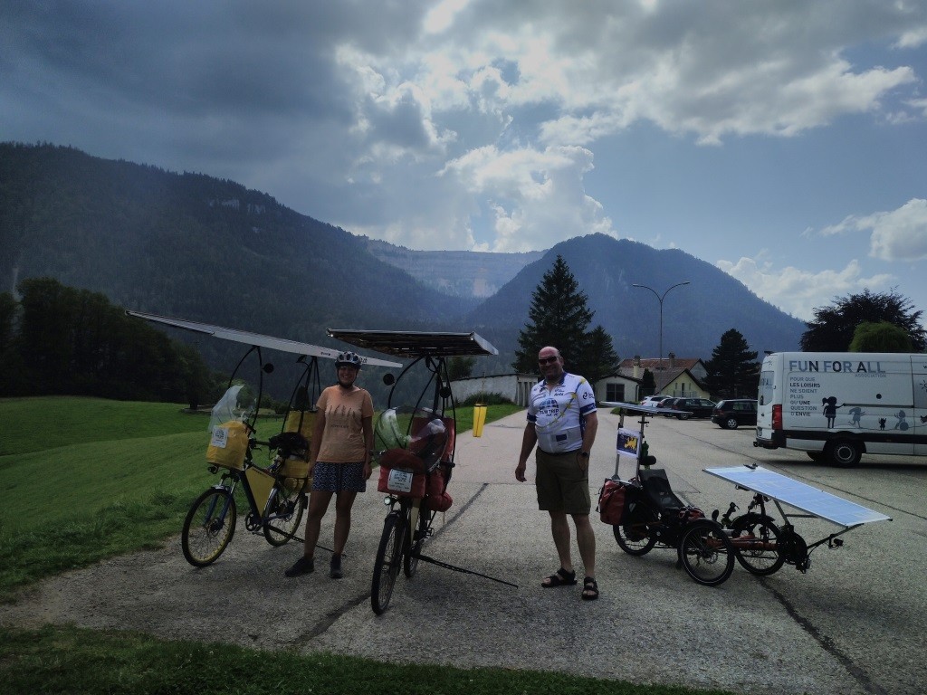 With a Solarbike you are an ambassador (or simply a tourist attraction). Here in front of the dome of Mazamet Sibylle does the job and explains to the folks what we do.