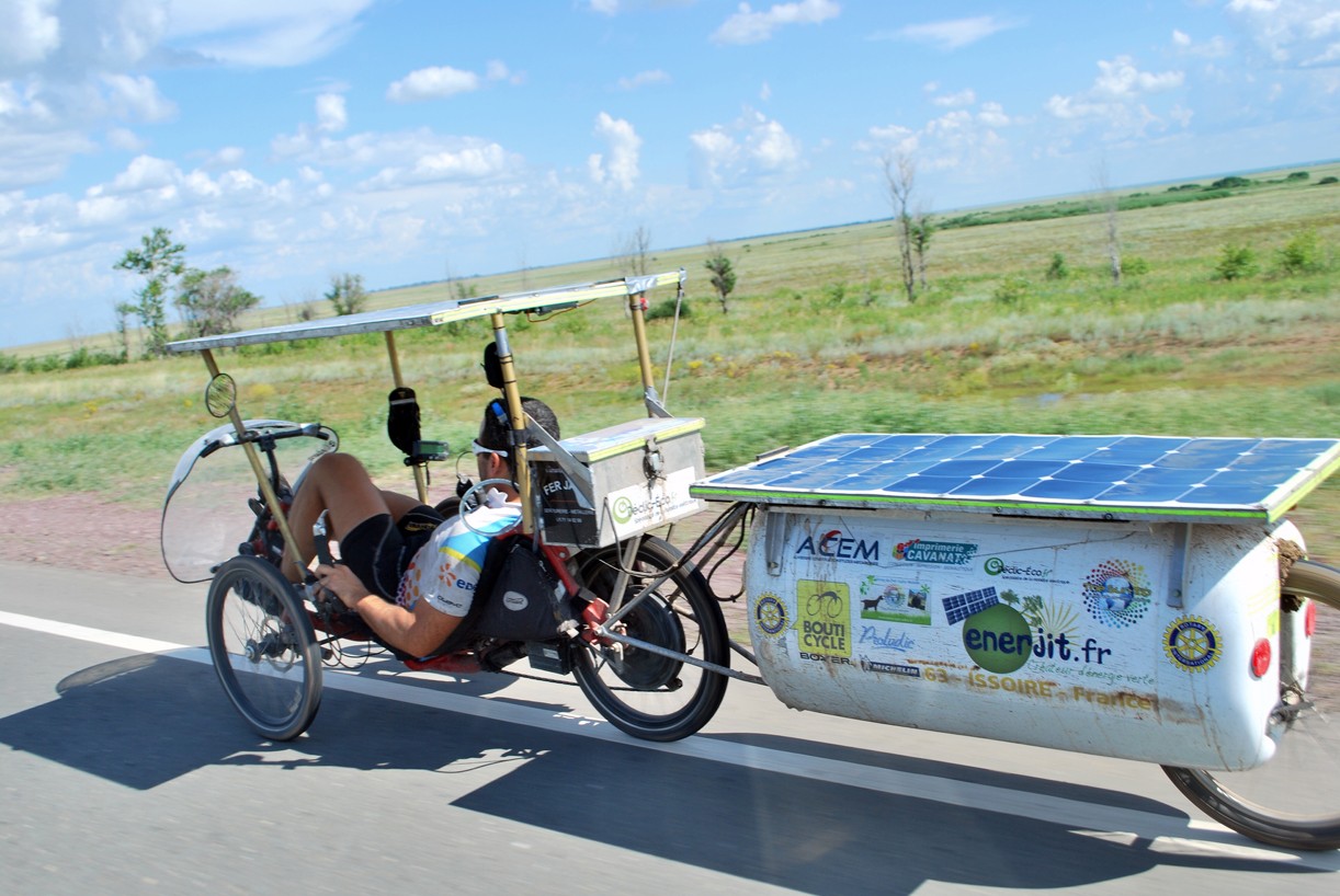He made a successful bet: in June 2013, twenty-eight solar bikes set off between France and Kazakhstan, riding over 8,000 km. Participants were from a wide range of ages and abilities. Three main profiles emerge from this cycling rally: