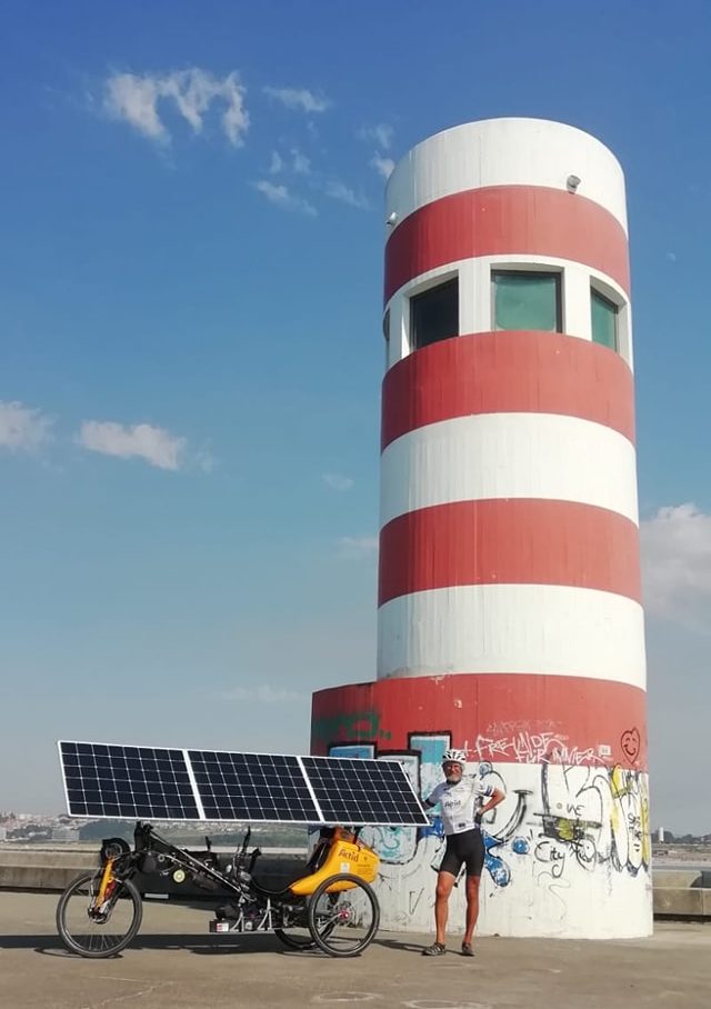 Bernard Cauquil (Team Aktid) is not giving up! He has accelerated since the Alps and is still behind in Porto after the checkpoint in Constanta. He is happy to show that his incredible solar bike can compete with the velomobile when the road is not too flat. He should not arrive in Lyon more than 3 days late. A champion.