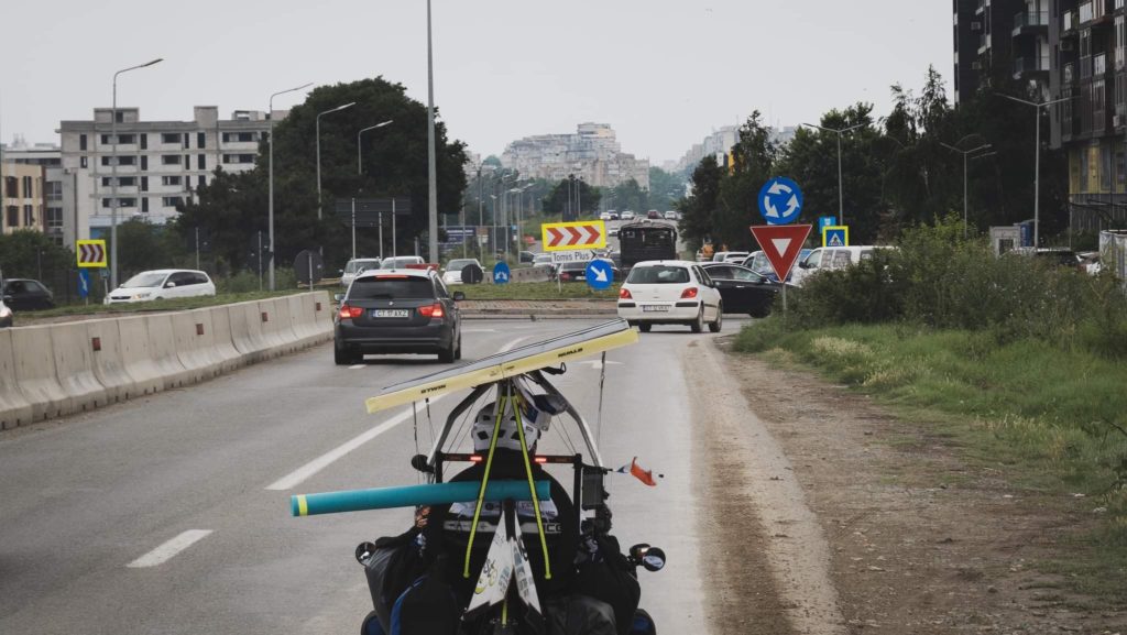 On a typical day, I do 220 km. But depending on the sun, it varies from 170 to 250. It’s a permanent balance between speed-consumption and battery level.