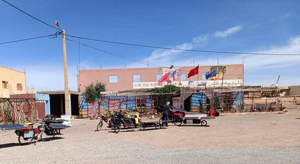 On the way to Ouarzazate, the group begins to turn its back on the mountains, even if the altitudes remain high and a few climbs are still on the agenda. But for the last 1,000 kilometers, the adventure takes on a whole new dimension. The first images here, including Raf Van Hulle, who’s always one step ahead.