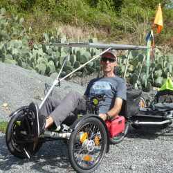 For my 50th birthday, I was looking for a ‘crazy’ challenge and while surfing the net, I found images and reports on the 1st Sun Trip Turkey and China. So I ordered an Azub solar trike from Declic Eco.