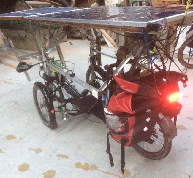 Here he is with us for part of the Sun Trip France, aboard his homemade solar bike.