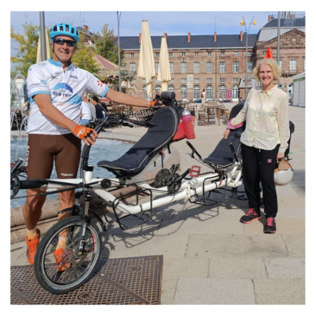 Sylvain: Suntrip 2022 with abandonment due to broken equipment, Bikingman 2021, finischer. Tour de la Creuse by bike trip in 2020, average of 5000 kms per year by muscle bike. I want to get back in the saddle with a recumbent tandem that I will share with my wife. And this time I intend to go all the way and play the points…..