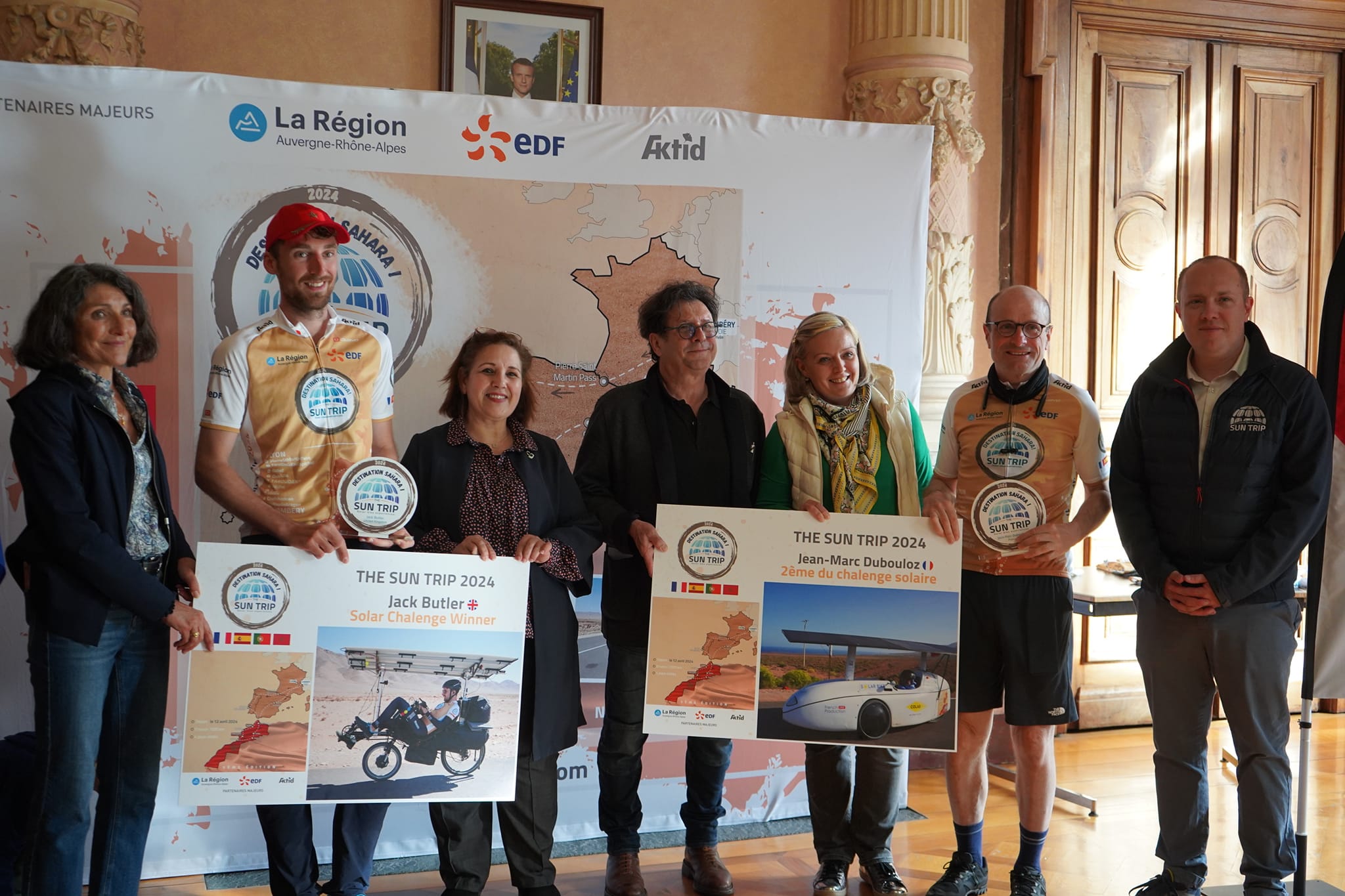 Before offering you a final article on the race of the first two Sun Trip 2024 runners, with their analyses of the key moments of the adventure, here are a few images from the welcome ceremony organized on May 6 with the city of Chambéry, in the presence of the Moroccan Consulate General in Lyon and representatives of our partners Région Auvergne-Rhône-Alpes and EDF. It was a great honor to be able to congratulate the two great champions of the Sun Trip 2024 in the same ceremony, as we had already been able to do in 2021.