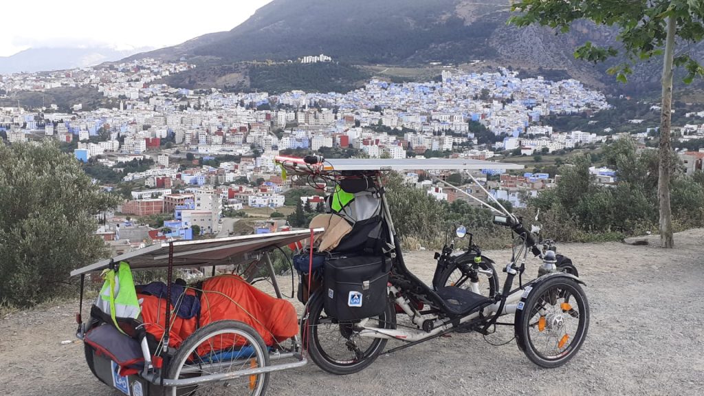 “From Morocco, I’ll remember above all the magnificent landscapes of the Atlas Mountains, well deserved after a few thousand kilometres of pedalling. The days in the desert before Zagora were quite trying, I’ll remember: sandy wind (head-on), lack of sun, exhausting pedalling with breaks sometimes every 5 kilometres (to get your strength back), now I can say: “I’ve done it! One rather negative point I’d like to mention though: the various insults and assaults from the children in response to my greetings… it reveals a worrying lack of education and quite taints the Moroccan hospitality I’d come to seek.”