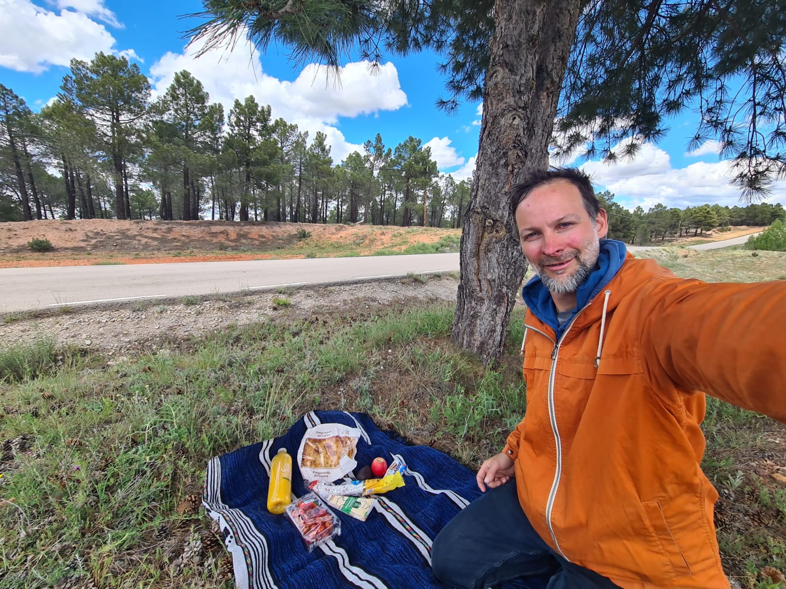 About 250km behind Vivien Dettwiler continues his solo adventure, while taking some magnificent photos. “Today, I’m very happy to have reached the last checkpoint. This tree in Molina de Aragón is magical. There are clouds everywhere, but not where the tree is. I stayed there for about 2kWh or four hours and enjoyed my picnic. For tonight, I found another nice place to sleep, this time in the middle of a forest, still at about 1000m altitude, so it’ll still be cold in the morning. For the next few days, I still don’t know whether I should take the road via Andorra or Barcelona. I think I’ll let the weather decide“.