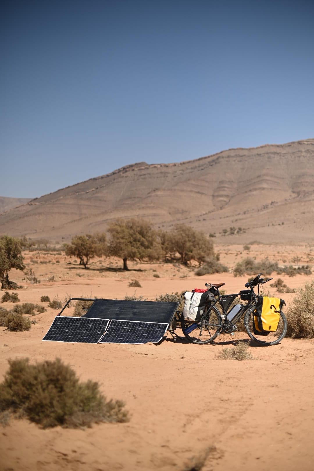 “I loved discovering the bike and always the beautiful colors. My favorite part was crossing the desert zone between Sidi Ifni and Zagora, which was a real adventure. It was there that I suffered my only puncture of the trip. I also have wonderful memories of arriving at the checkpoint at the Tizi N’test pass, almost at nightfall, with the view plunging down over the Taroudant plain. It was absolutely spectacular”.