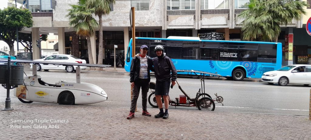 On the race front, the highlights of Day 9 were the Sun Trip’s passage through Morocco! It’s a first, inaugurated by Jack and Jean-Marc, who arrived in Tangier with a 2-hour gap between them. They arrived in the rain, but were greeted with great kindness by Youssef El Houass, 2018 suntripper and great Moroccan traveler. What a source of pride. The two leaders then rode all day without sun, their batteries empty or almost empty. For a while it looked like Jean-Marc was going to catch up with Jack, but in the end the gap was maintained, and around 60km separated the first from the second. The Rabat Checkpoint will be crossed this Sunday, April 21!