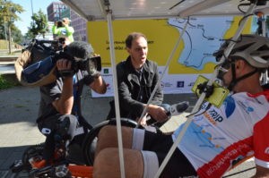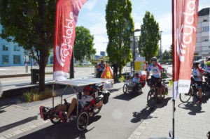 The start was given this Thursday, July 8 at 10 am, from the Cyclable de Strasbourg étoile, Cyclable counting among the partners 2020 and 2021, in particular through the participation of Arnaud Roulland. Arnaud will make some appearances during the Sun Trip France to prepare for the great adventure 2021.