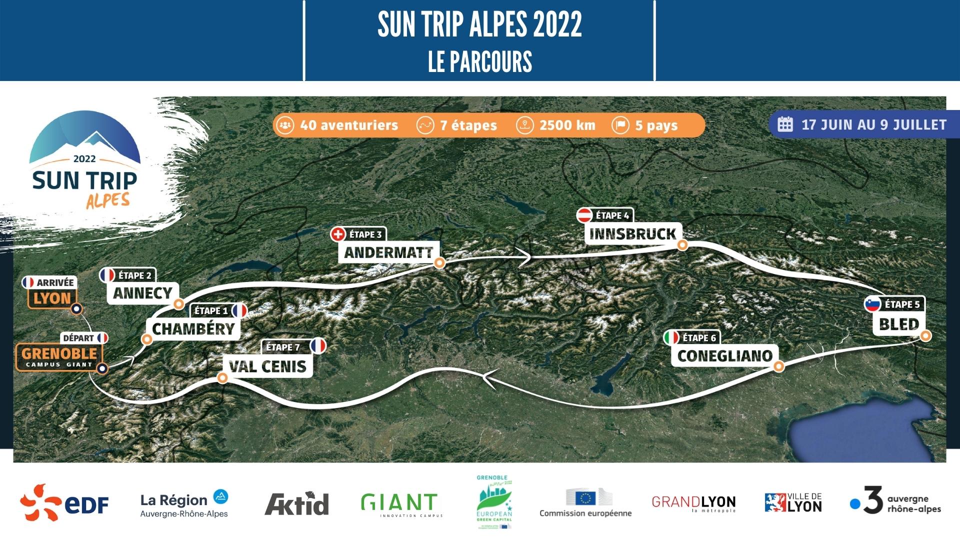 The Sun Trip Alps will be a new great chapter in our dynamic, with a crossing of 6 countries (including 5 member countries of the European Union). A loop of just over 2500 km, with 7 major stages and welcomes every 2 to 4 days, which will be a unique opportunity to discover the richness and diversity of the Alps.