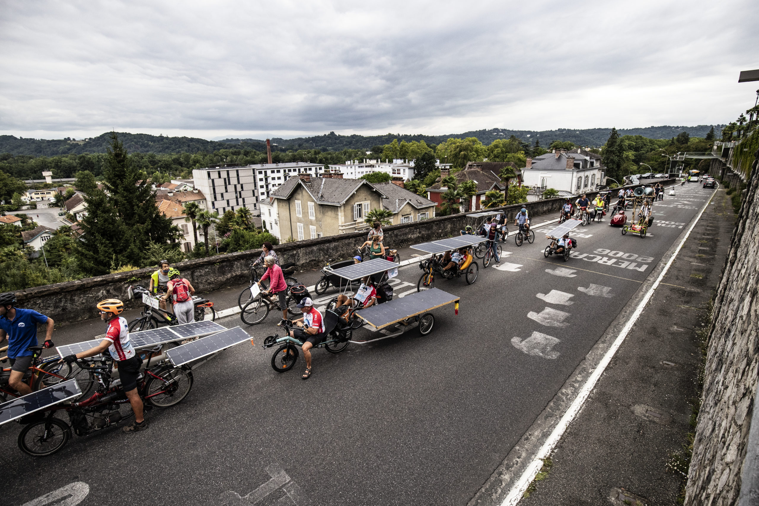 The Sun Trip France has moved up a notch with the leg of the Col du Tourmalet, a leg imagined from the beautiful city of Pau, the day after a day of rest which gave us the opportunity to parade with the ‘”Pau à Vélo” association.