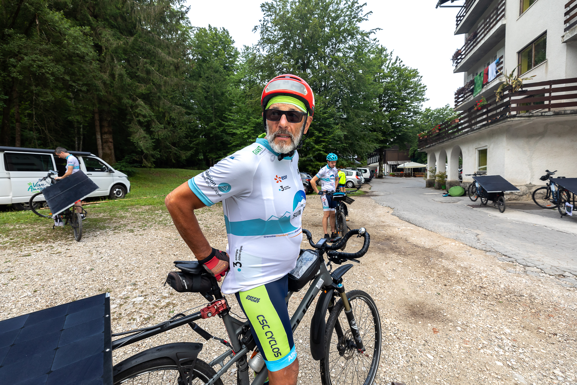 Cette journée de pause était aussi l’occasion d’un changement d’équipe pour la Team EDF. Pour l’équipe EDF, les 5 collaborateurs qui ont fait la route depuis Grenoble sont relayés par 5 autres ! La mission est maintenant de rejoindre l’arrivée à Lyon, le 9 juillet, avec les vélos solarmoov.com .