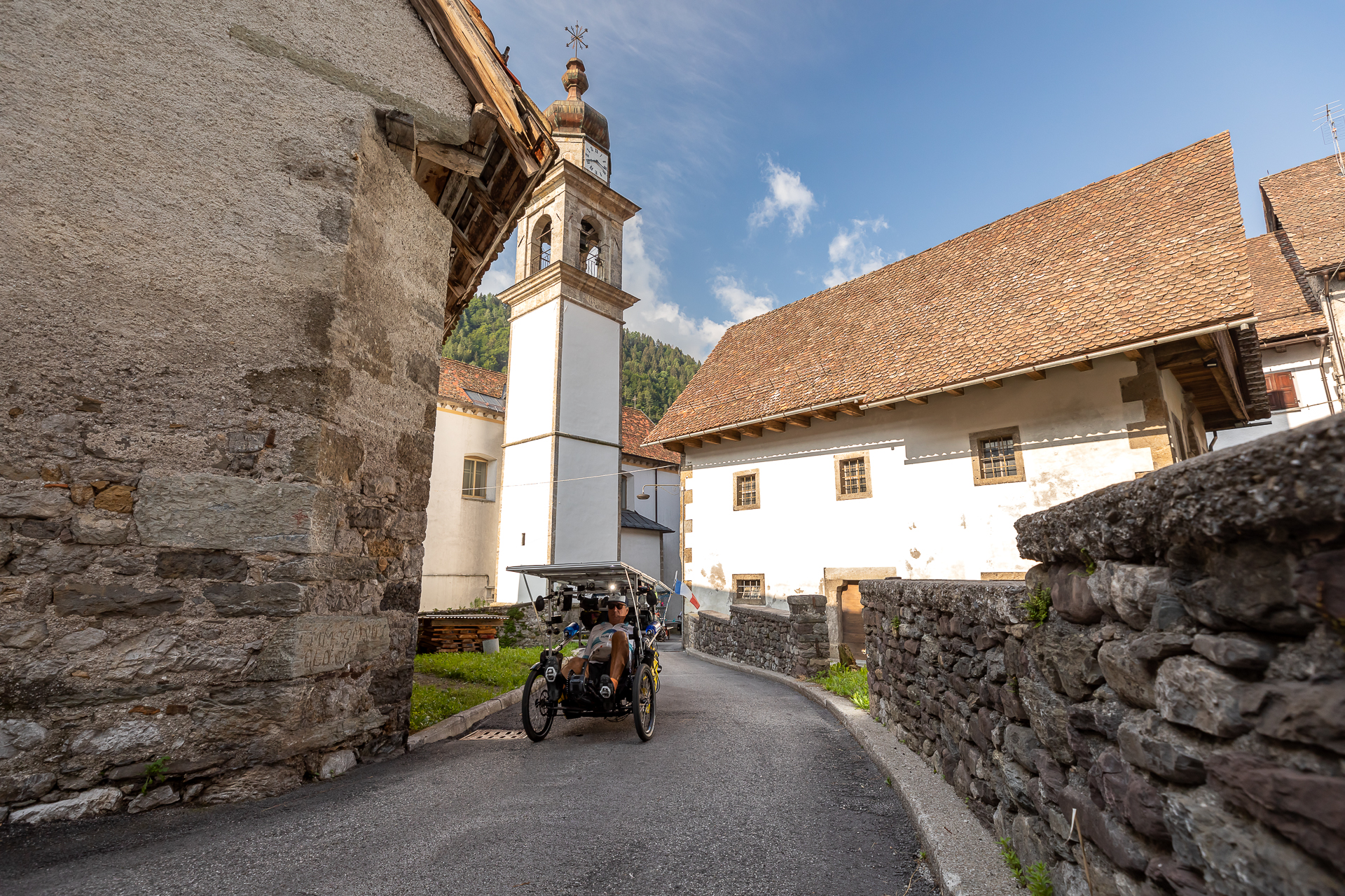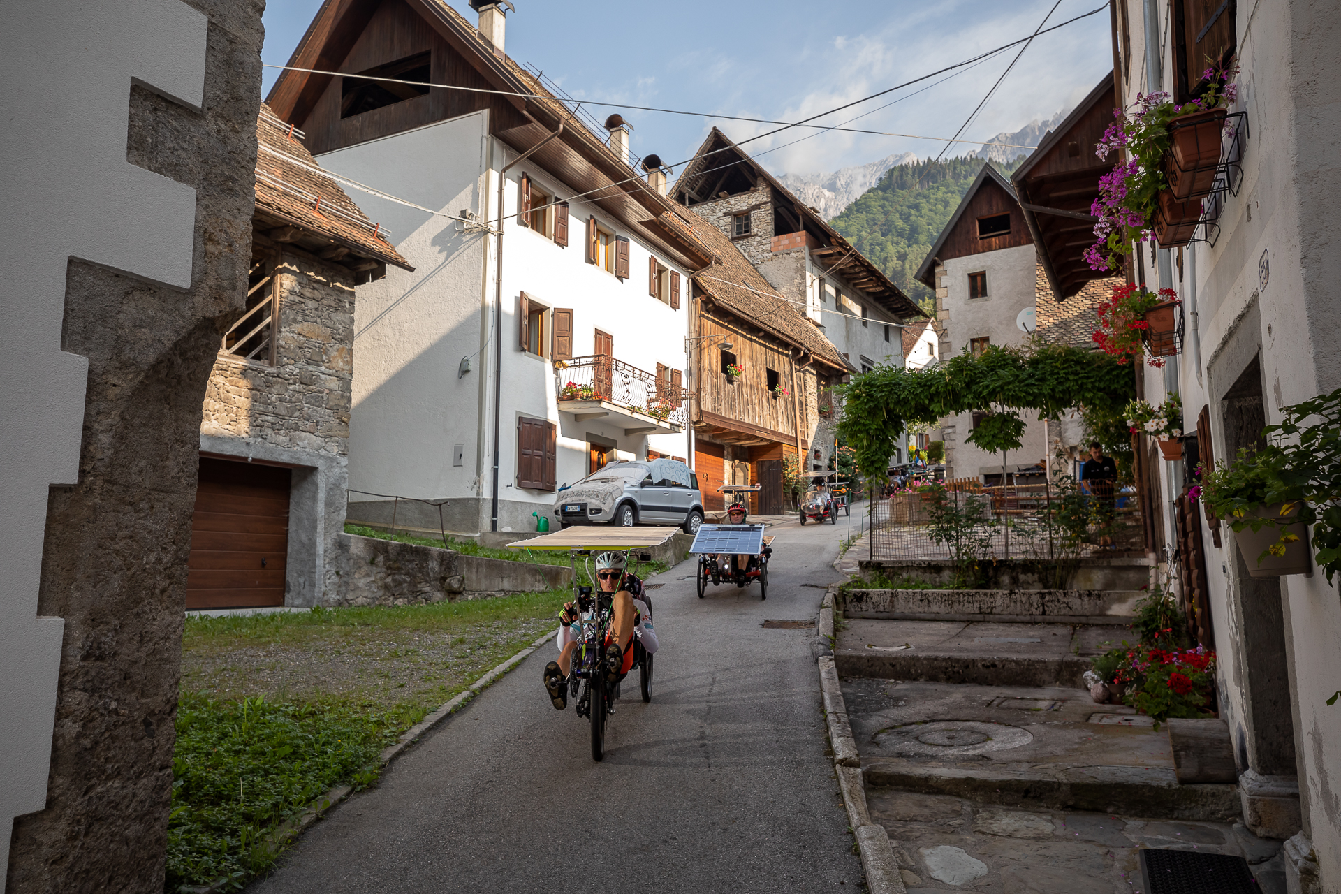 Le groupe continue aujourd’hui sa route en faisant un virage à l’Ouest, direction la frontière italienne pour rejoindre demain la petite ville de Conegliano. Une étape courte, imaginée avec notre aventurier local de l’étape : Daniele Gonano (Team Groupama).