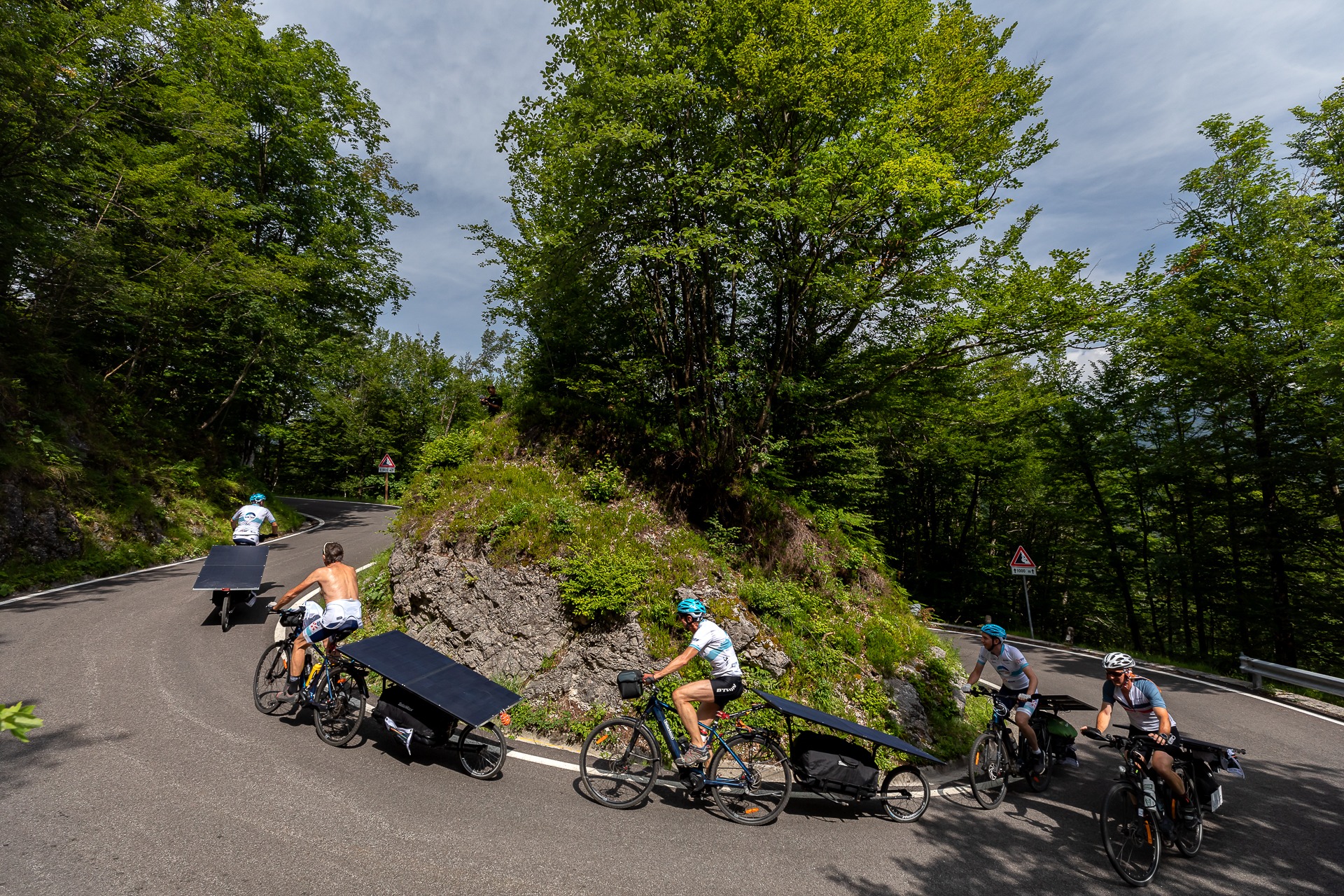 En Slovénie, il nous faut aussi faire un zoom sur la route de Mangart, qui a mené nos meilleurs grimpeurs jusqu’à 2400 mètres d’altitude, dans un décor à couper le souffle. Cette montée est d’autant plus impressionnante qu’elle est un cul-de-sac, obligeant les participants à revenir sur le pas. Mais quelle vue au sommet pour les courageux Emile, Hugo et Kilian !