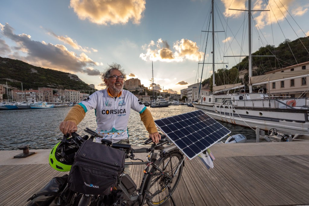 Avant de diffuser les photos du final corse, hier à Bonifacio, un coup de chapeau à Gilbert Marmey, le premier participant à finir un Corsica Sun Trip en recharge 100% solaire.