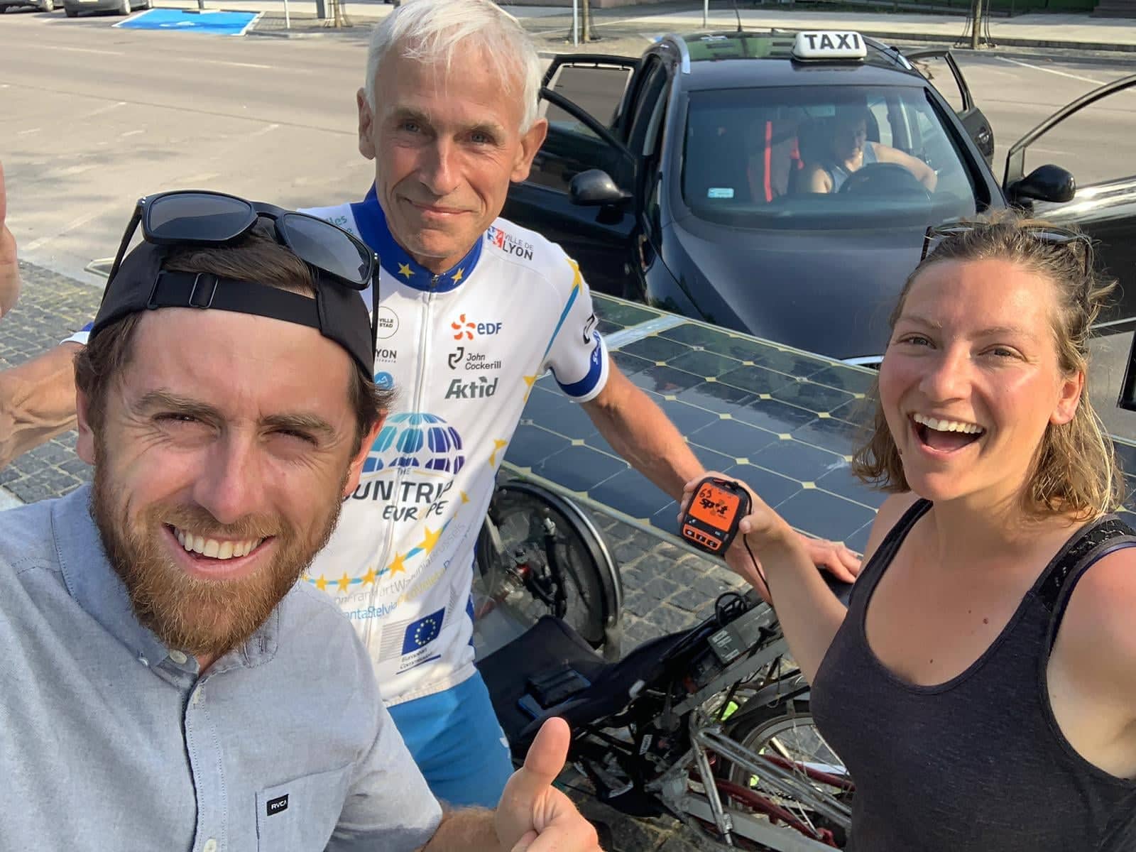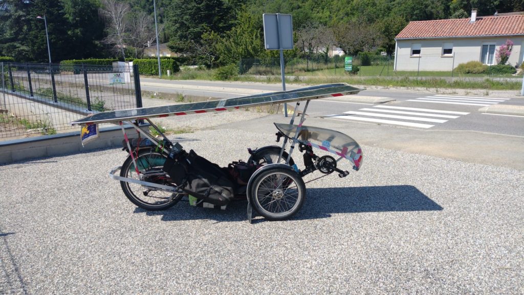 Un début d’aventure périlleux pour sa deuxième participation au Sun Trip, avec un accrochage survenu le 17 juin à 12h30 avec une voiture. « Je n’avais pas vu de feu, et pendant que je traversais tout le monde se met à rouler, je me jette dans la direction opposée et je regarde la voiture. Heureusement que j’ai un bon ange gardien. »